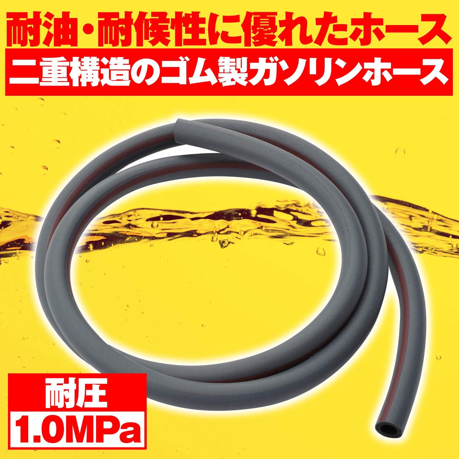【仕様1】ガソリンホースは内側に耐ガソリン性に優れる合成ゴム、外側には耐候性に優れたポリエチレンゴムを採用