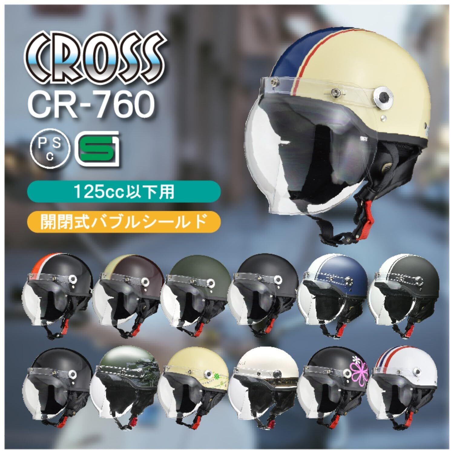 【在庫処分】リード工業(LEAD) バイクヘルメット ハーフ CROSS バブルシールド付き CR-760
