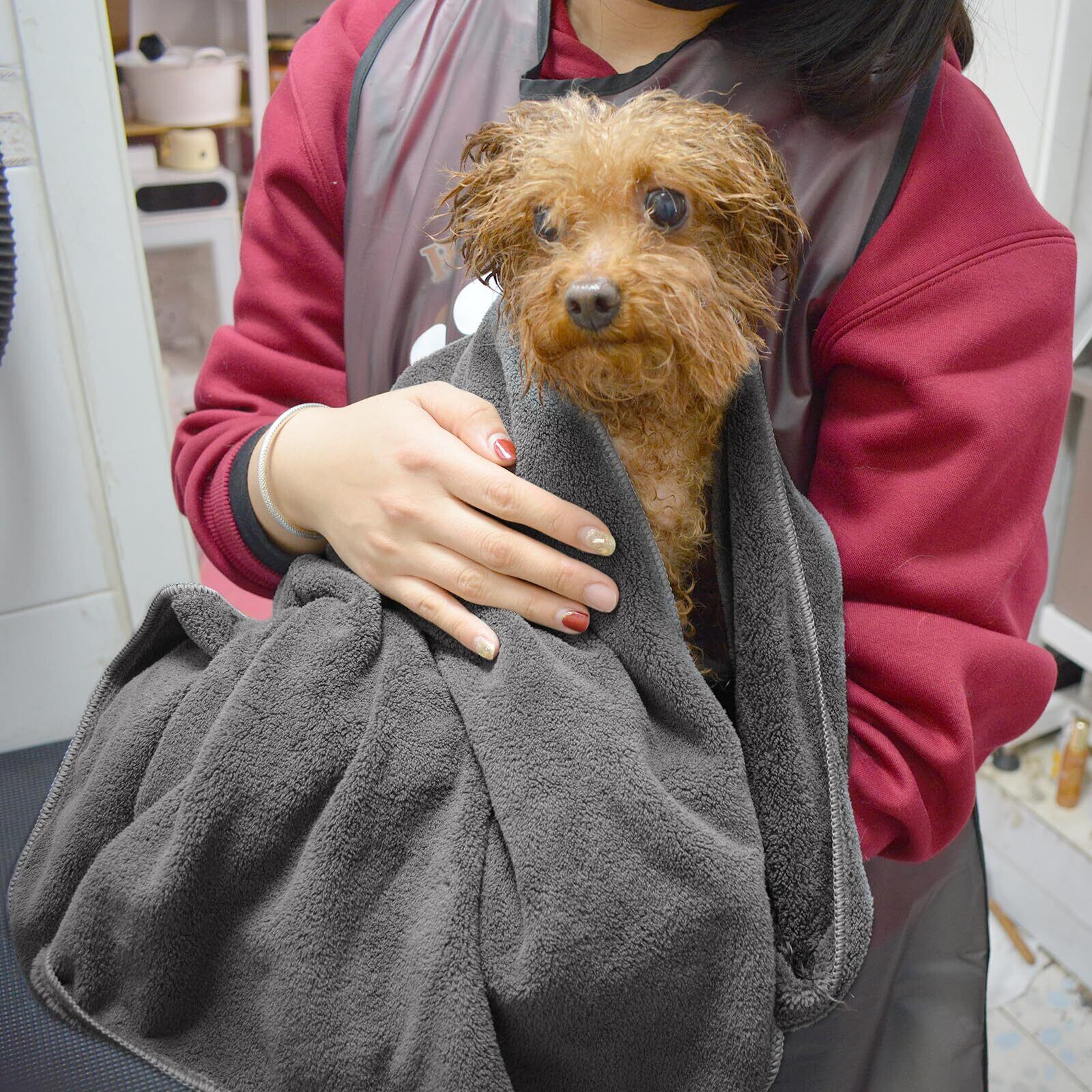 吸水力に優れ、シャンプー後や雨の日のペットの体拭きに最適です