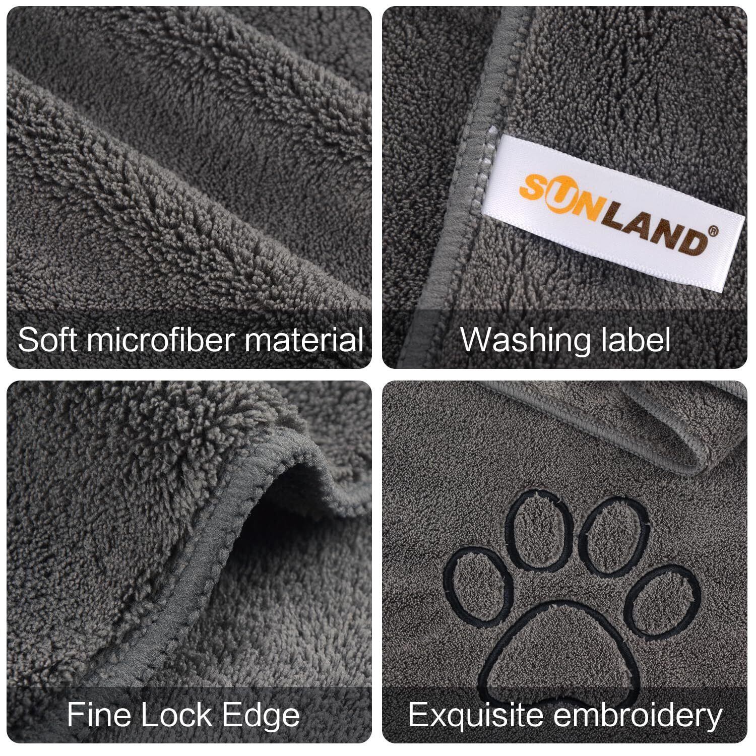 Sunland ペット用 タオル 超吸水 厚手 超ソフト マイクロ ファイバー 犬 猫 体拭き 77cmx127cm ダークグレー