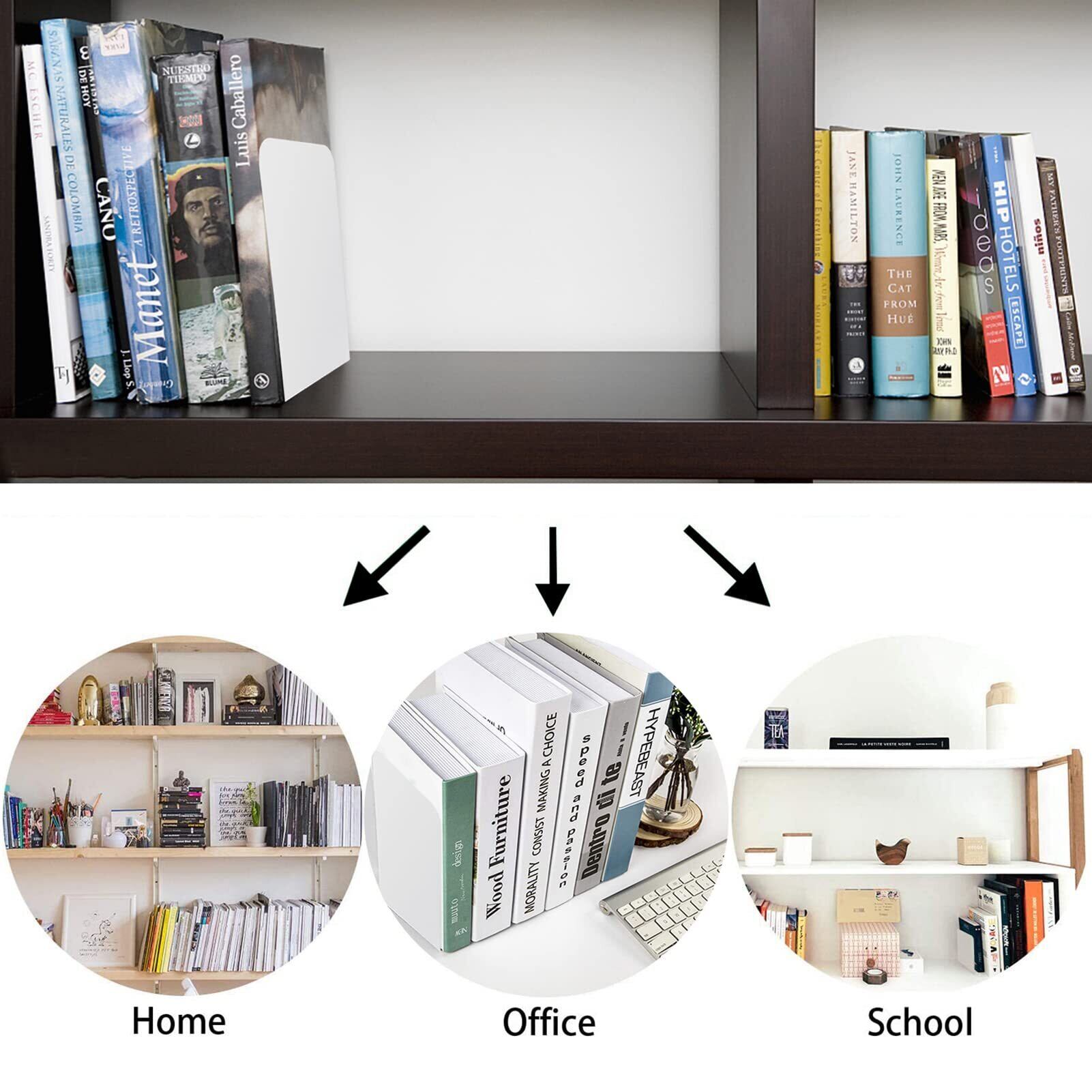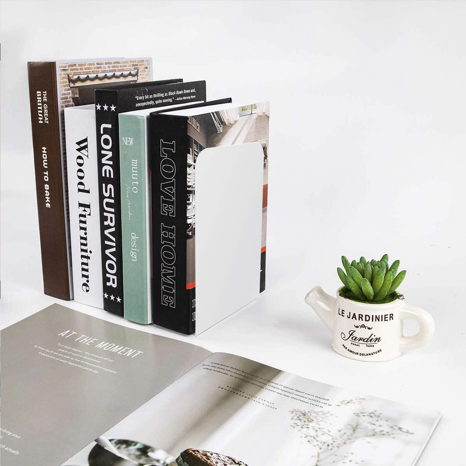 【新着商品】GOH DODD 8枚 ブックエンド ホワイト 金属製 本立て 倒れない 滑らない ブックスタンド 卓上収納 仕切り デスク整理 文房具入れ 新聞 書類 ファイル 雑誌 CDの整理用 スタンド 事務用品 文房具
