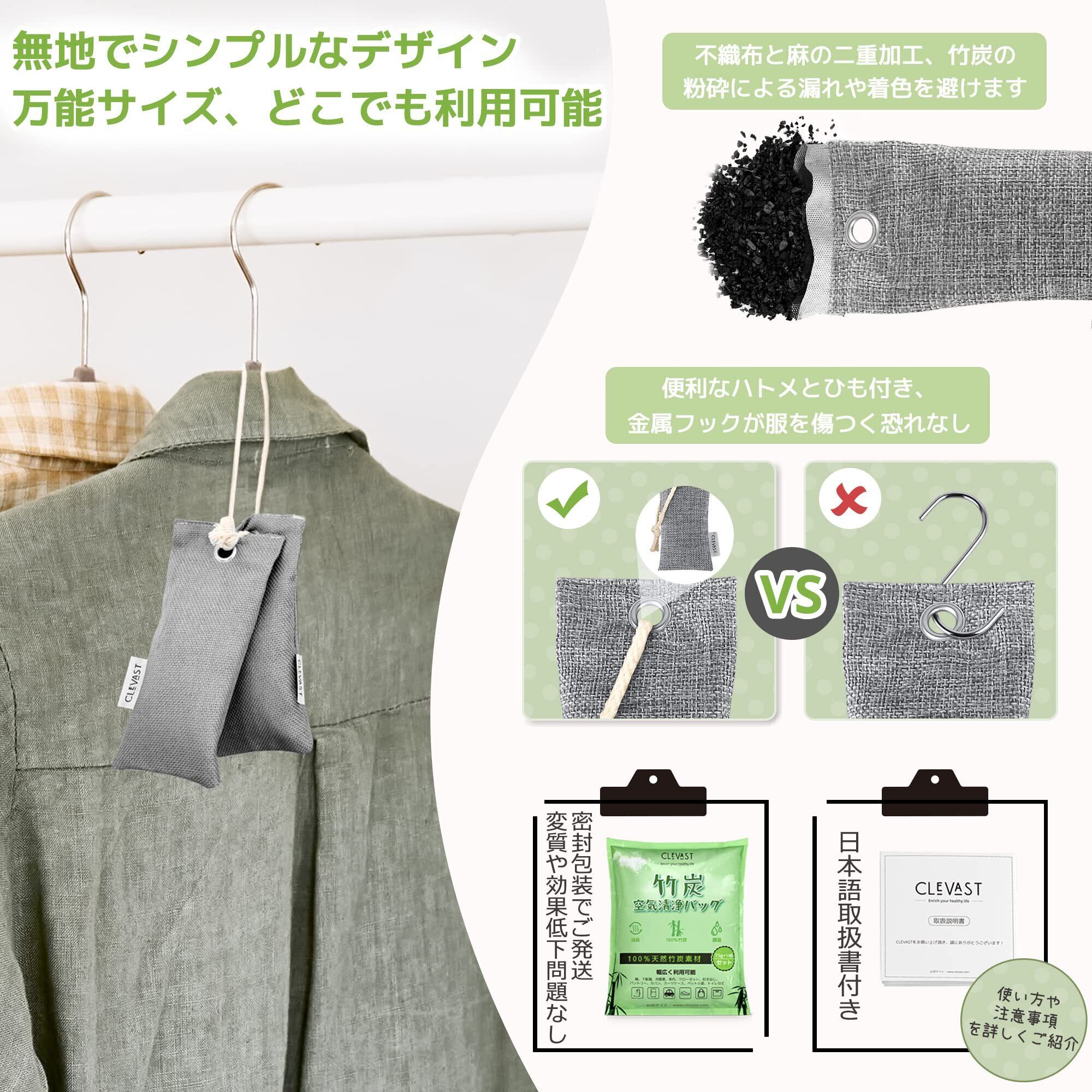 CLEVAST 靴 消臭 除湿剤 乾燥剤 消臭剤 湿気取り 車 靴箱 下駄箱 クローゼット パントリー 冷蔵庫 革靴 ブーツ 玄関 部屋 インテリア 脱臭 匂い対策 調湿 防カビ 竹炭バッグ