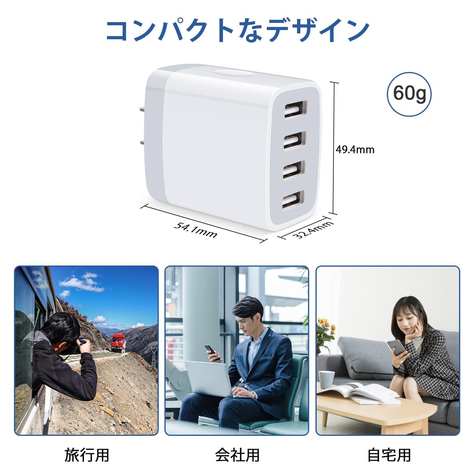 USB コンセント 4ポート USB充電器 24W ACアタプター iPhone急速充電器【PSE認証済/USB-A*4口同時】FodLop 2.4A急速チャージャー USB電源 携帯充電器 コンパクト for iPhone 16/15/14/13/12/11/8/XR/X/SE,Galaxy,Aquos,Sonyなどのタイプa機器対応