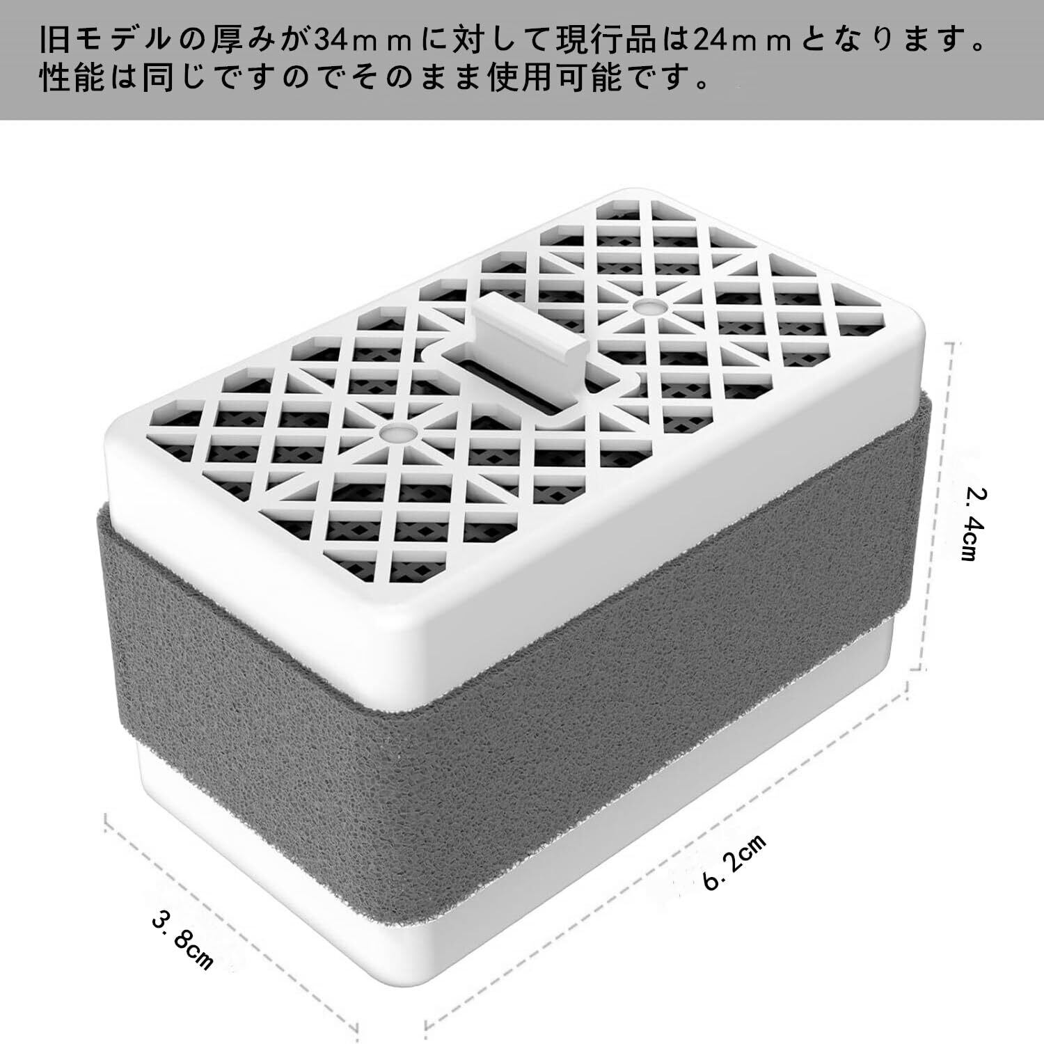 【サイズ】幅62mm×高さ38mm×厚み24mm。旧モデルの厚みが34mmに対して現行品は24mmとなります。性能は同じですのでそのまま使用可能です。