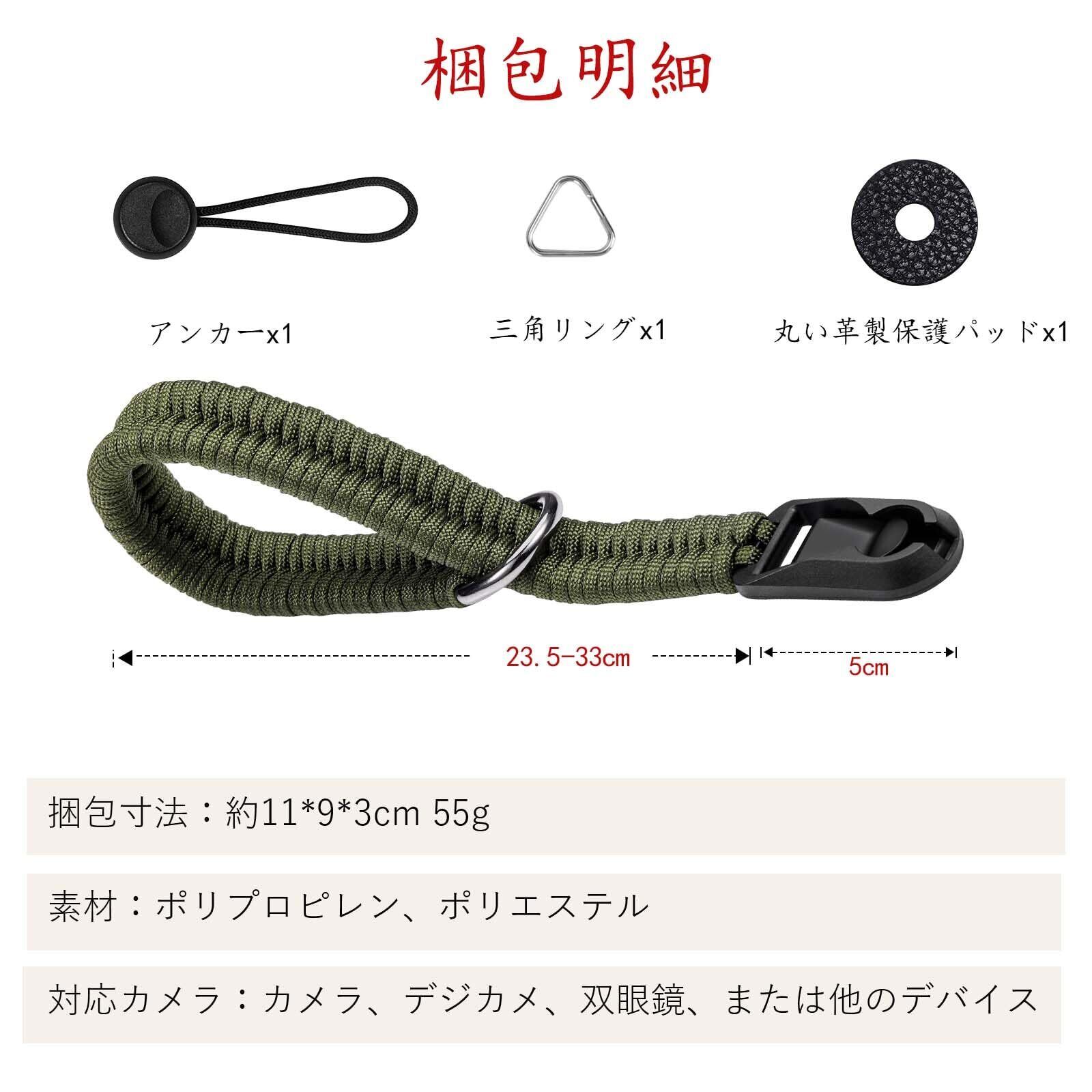 [Yullmu] カメラストラップ カメラ ハンドストラップ パラコード編み アンカーリンクス 三角リング付き 一眼レフ・ミラーレス用 緑