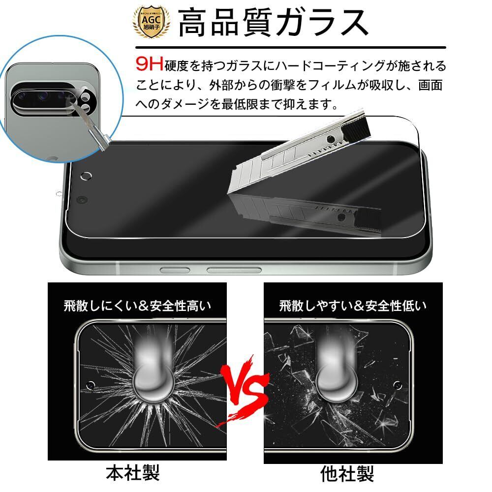 【4枚セット】対応 Google Pixel 9pro 用 ガラスフィルム【2枚+2枚】レンズ保護フィルム付き 超薄型 ガイド枠付き Google Pixel9 proフィルム 日本旭硝子製 google Pixel 9pro強化ガラスフィルム カメラフィルム ピクセル9pro用 液晶保護フィルム レンズフィルム ケースと相性バッチリ 硬度9H 貼付け簡単
