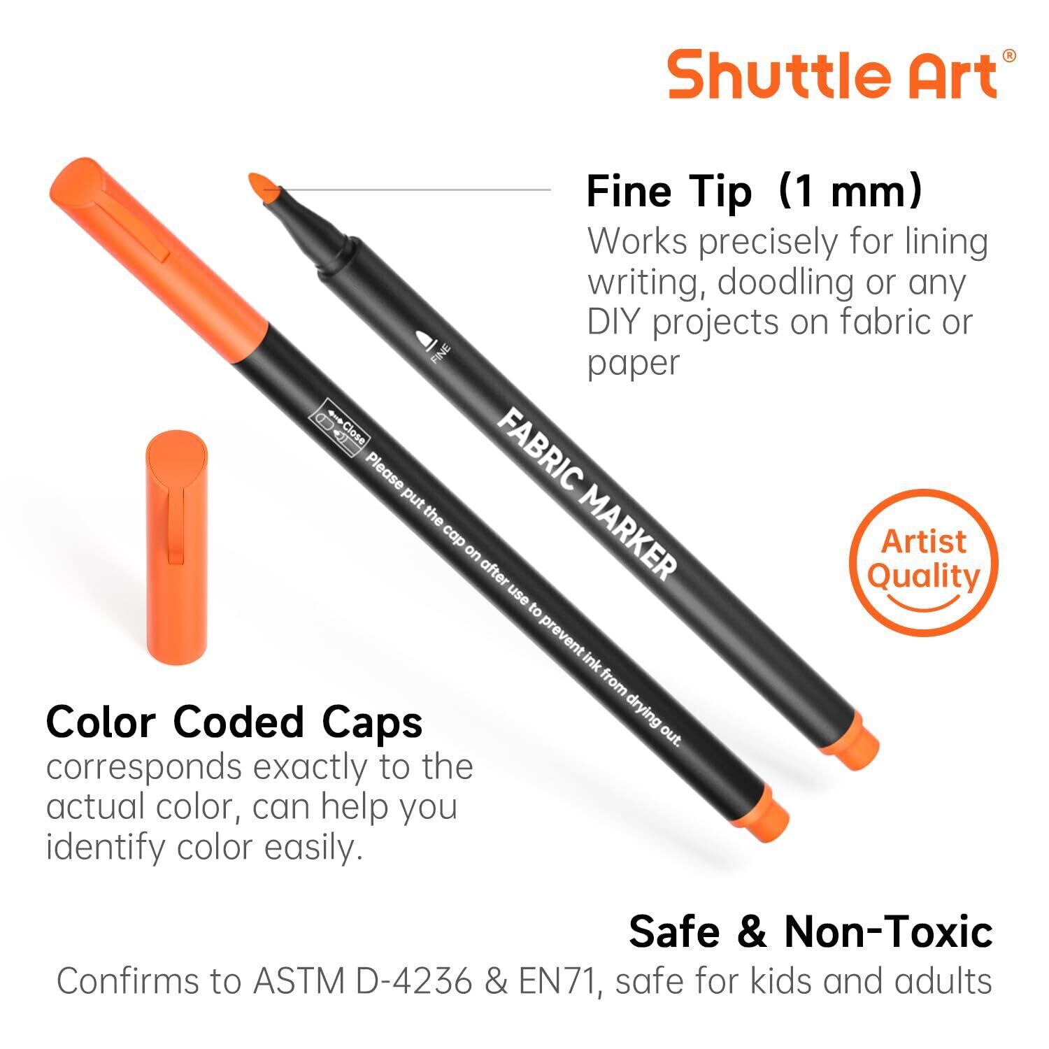 Shuttle Art 布用ペン 36色セット ファブリックマーカー 布に書けるペン 水性 速乾 耐水 耐久 ウォッシャブル 洗っても落ちない 色褪せしにくい ステンシル付き DIY ハンドメイド 手作り イラスト 落書き スニーカー Tシャツ カンバス 子供