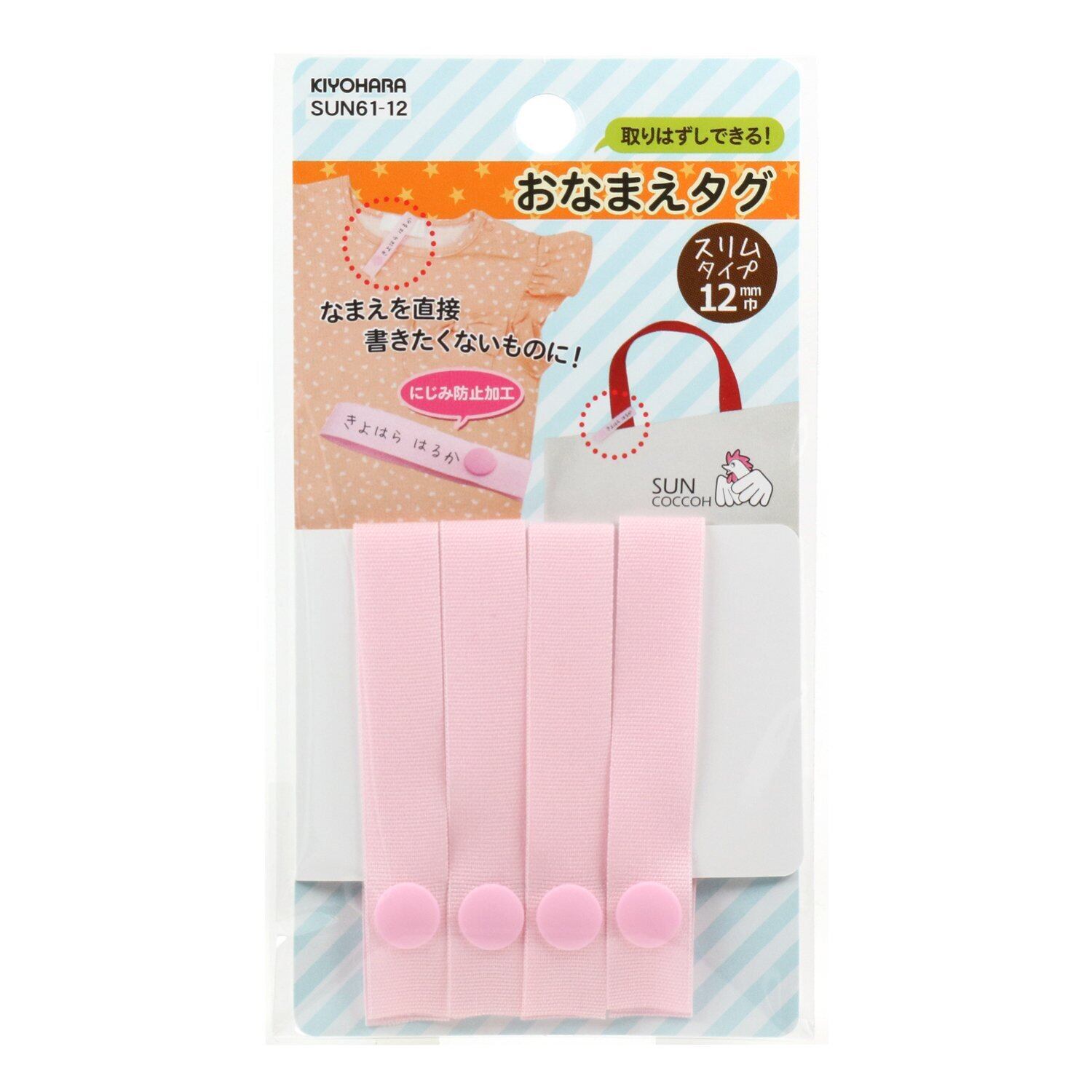 KIYOHARA サンコッコー おなまえタグ 4本入り 幅12mm×長さ14cm ピンク SUN61-12