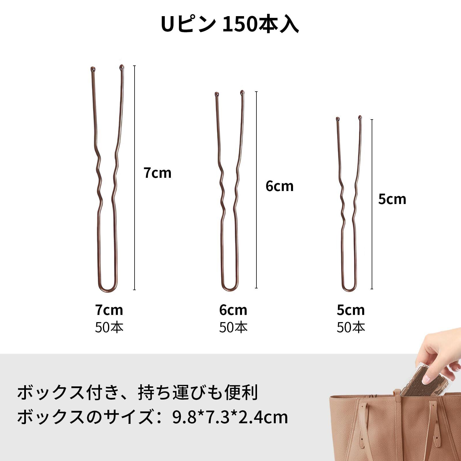 【新着商品】aninako U字ピン Uピン 150本 5cm+6cm+7cm 各50本入り ヘアピン ユーピン 玉付き 収納ケース付き ヘアアクセサリー 段付き ヘアクリップ バレエ 看護師 髪飾り 結婚式 成人式 卒業式 入学式 (茶色)