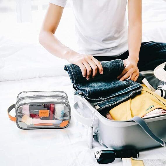【コンパクトサイズ&大容量のトラベルポーチ】約24 x 11 x 13 cmのサイズで、どんな大きさのスーツケースやバックパックにも収まります。3.8Lの大容量スペースがあり、シャンプーや真空カップ、スキンケア用品などの大きなトイレタリーも収納可能です。柔らかい素材なので、たくさん収納してもジッパーが閉めにくくなることはありません