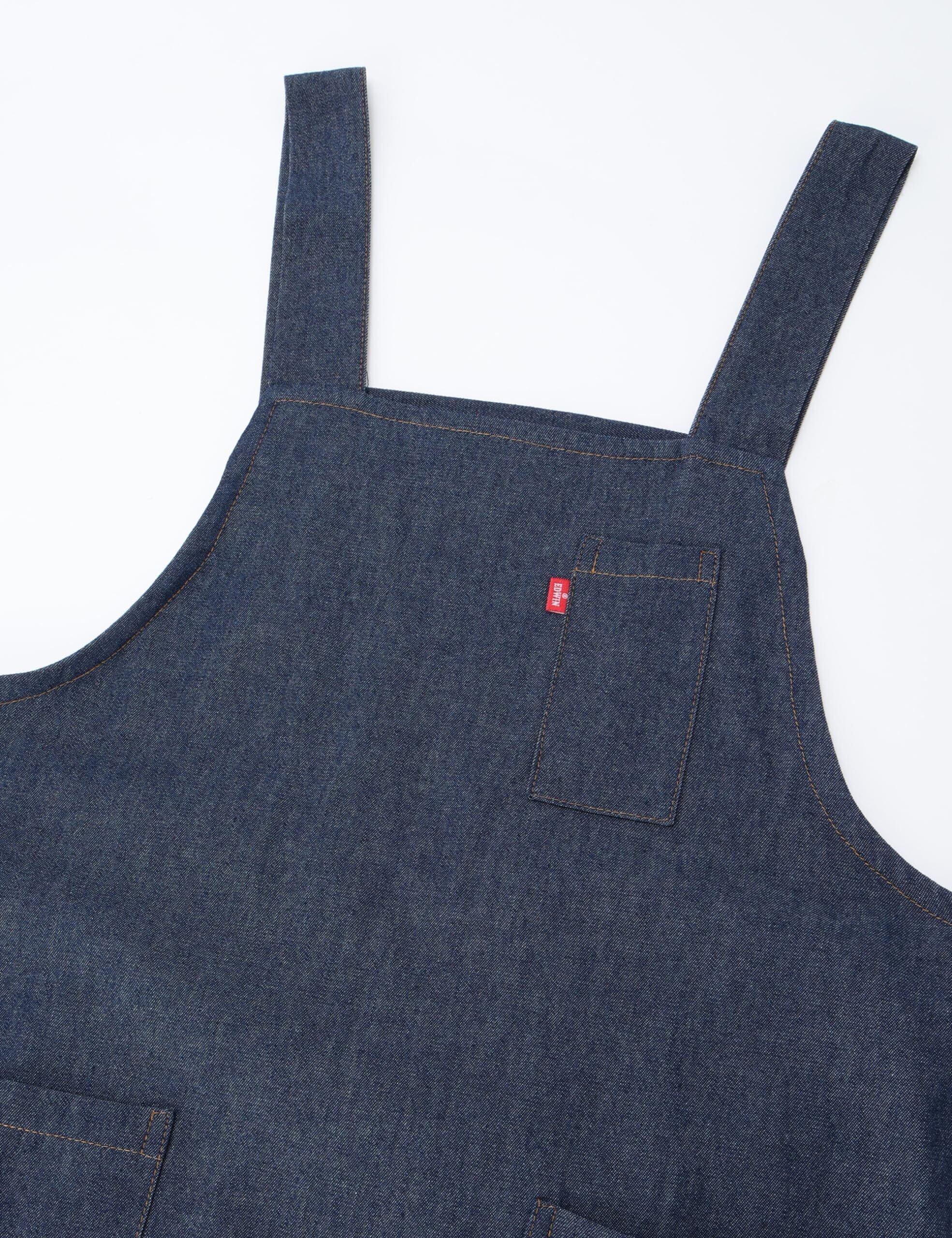 [エドウィン] エプロン 二段階調節可能な後ろ腰ボタン デニム H型 両サイドポケットペン差し付 ネイビー M