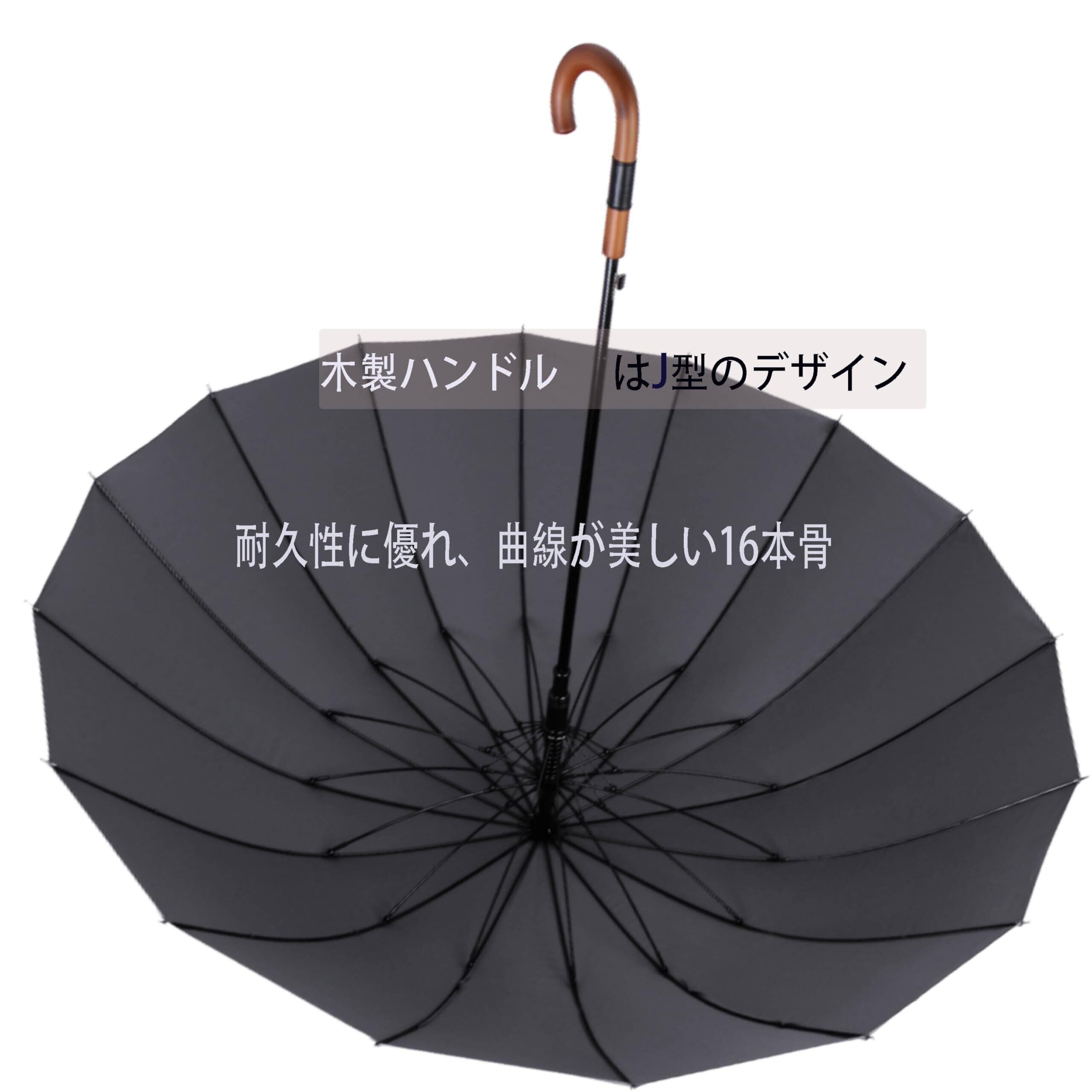 Aiyoupin傘 メンズ おしゃれ 125cm 長傘 大き 雨傘 紳士傘 16本骨 耐風 耐水 悪天候 高強度グラスファイバー J木製ハンドル 傘 軽量 メンズ ワンクリックで開く 男女兼用