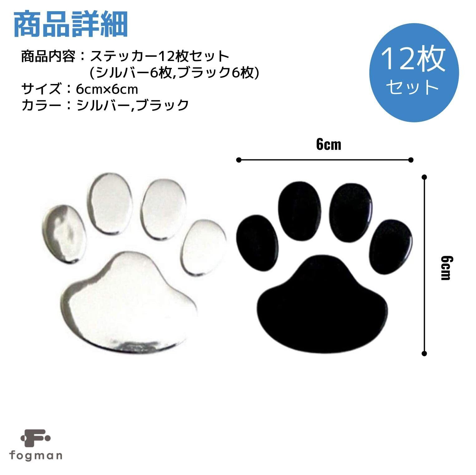 fogman ステッカー 肉球 立体 3D 車 犬 猫 デカール シール キズ隠し 12枚セット