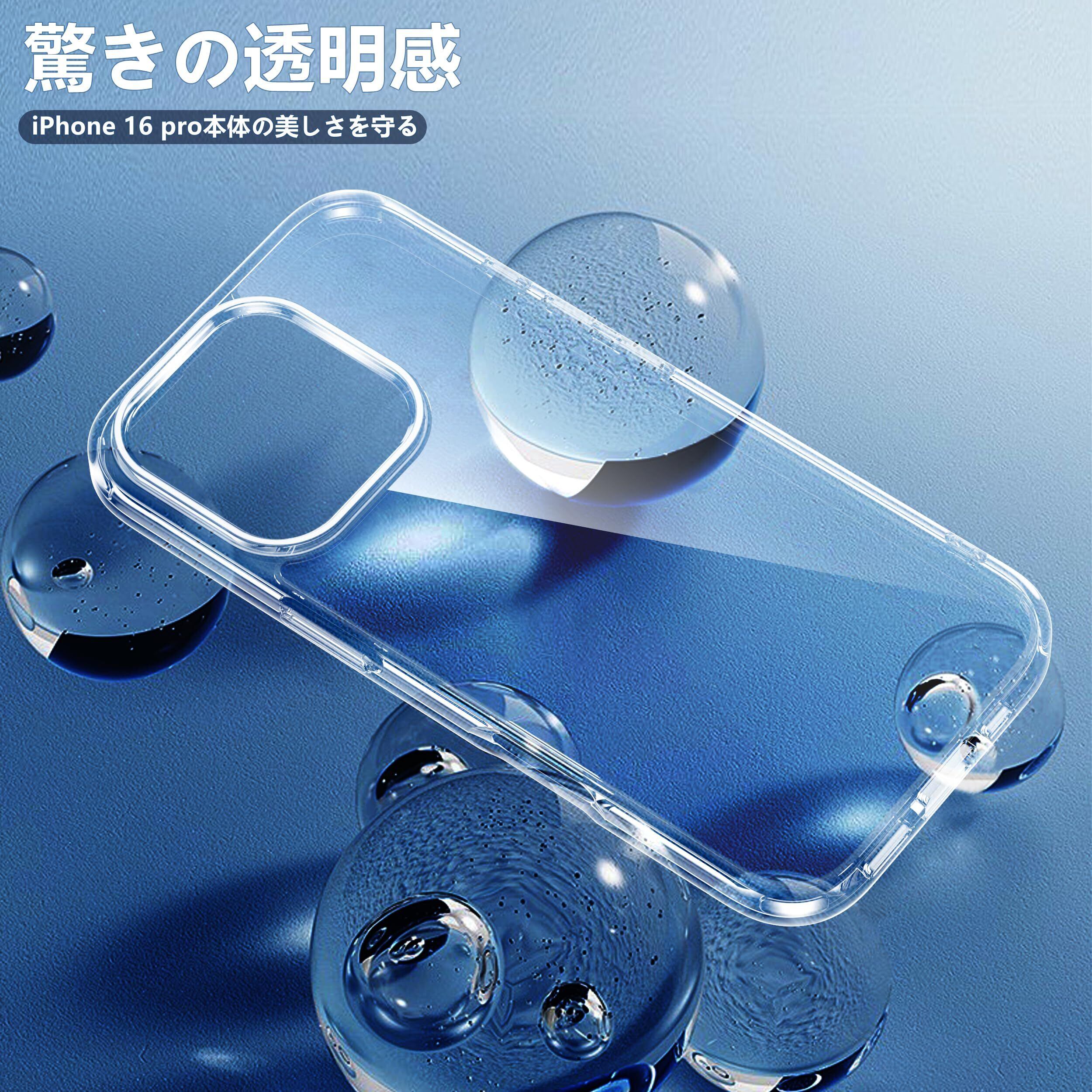 【驚きの透明度】透き通った高い透明度を誇り、iPhone 16pro本来の美しいデザインとカラーをそのままに楽しめます。黄変に強い素材を採用し、常に透明感を保ち、長時間使用しても黄色に変わりません。アイフォン16プロケースの背面は放熱性良いポリカーボネート素材で、熱を効果的に放散し、バッテリーにとても優しいです。