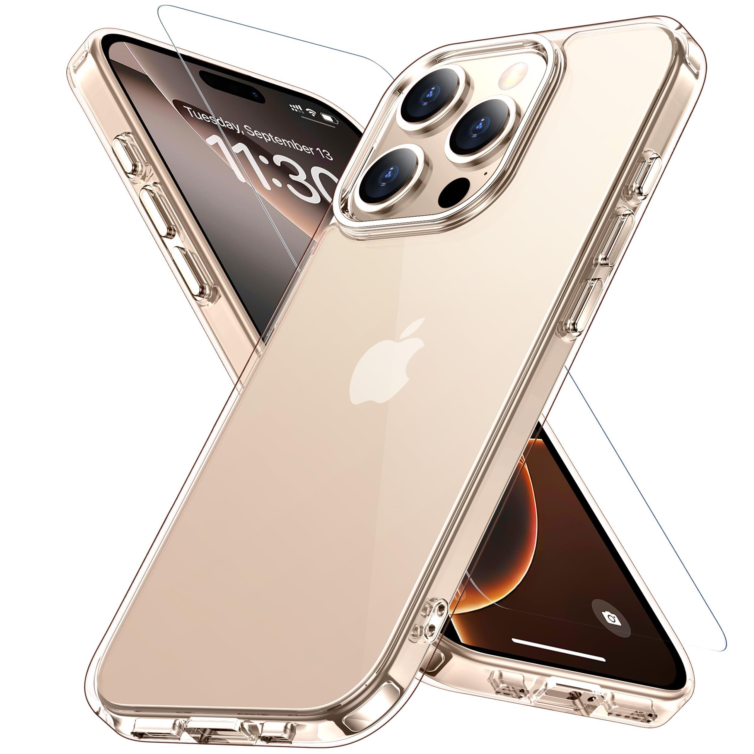 iPhone 16 Pro ケース クリア ガラス保護付き 黄変防止 アイフォン16 プロ用 耐衝撃 アイフォン 16 ぷろ専用 指紋防止 落下防止 あいふぉん16 pro 用 耐久性 ストラップホール付き 薄型 軽量 ソフト ワイヤレス充電対応 アイホン16pro(6.3インチ)カバー Justcool