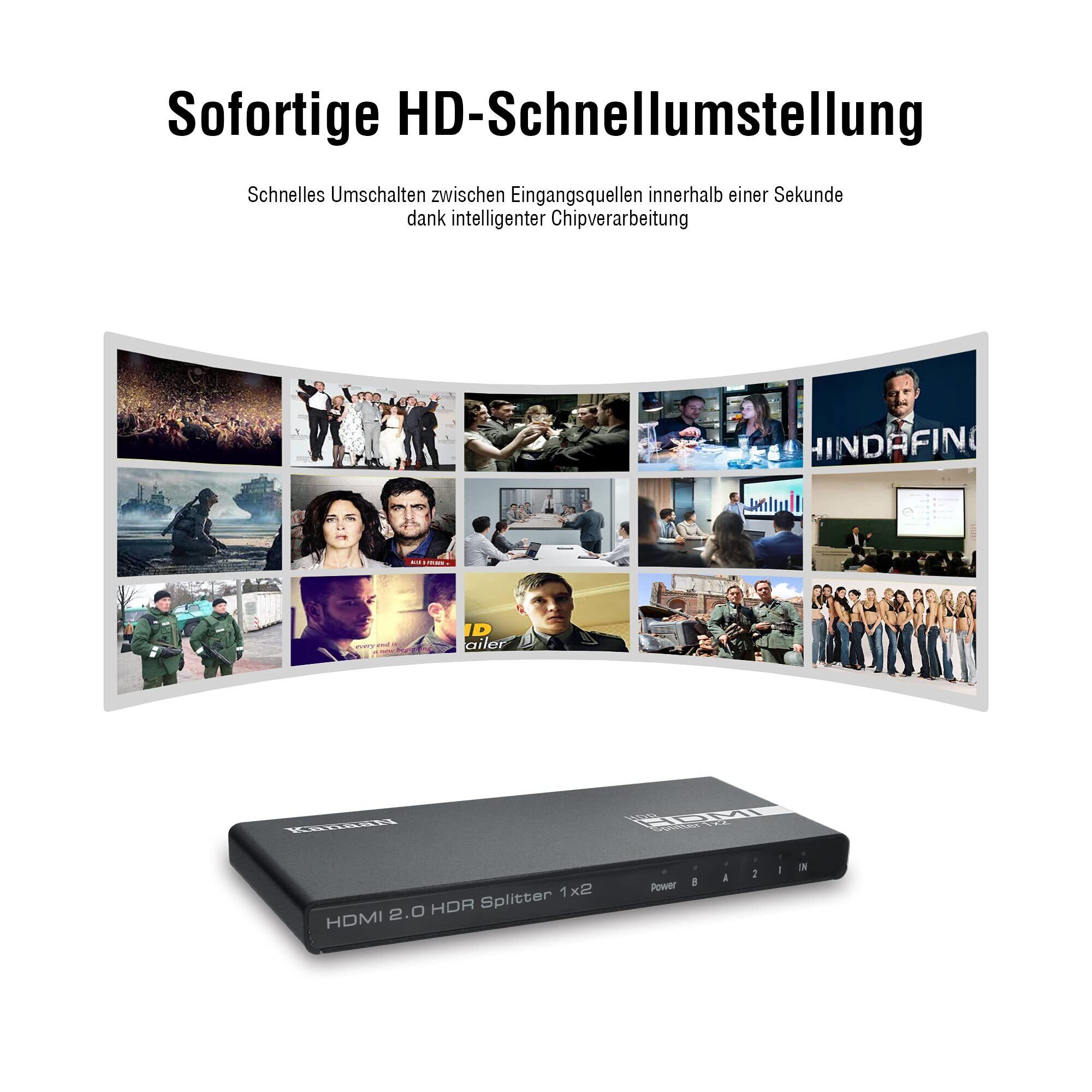 【4K@60Hz HDCP解除版】KanaaN HDMI 分配器 1入力2出力 4Kスプリッター1入力2出力のスプリッター 2画面同時出力 3D 1080p HDMI2.0 PS5 Xbox HDTV DVD 対応 高速HDMIケーブル USB電源ケーブル付き