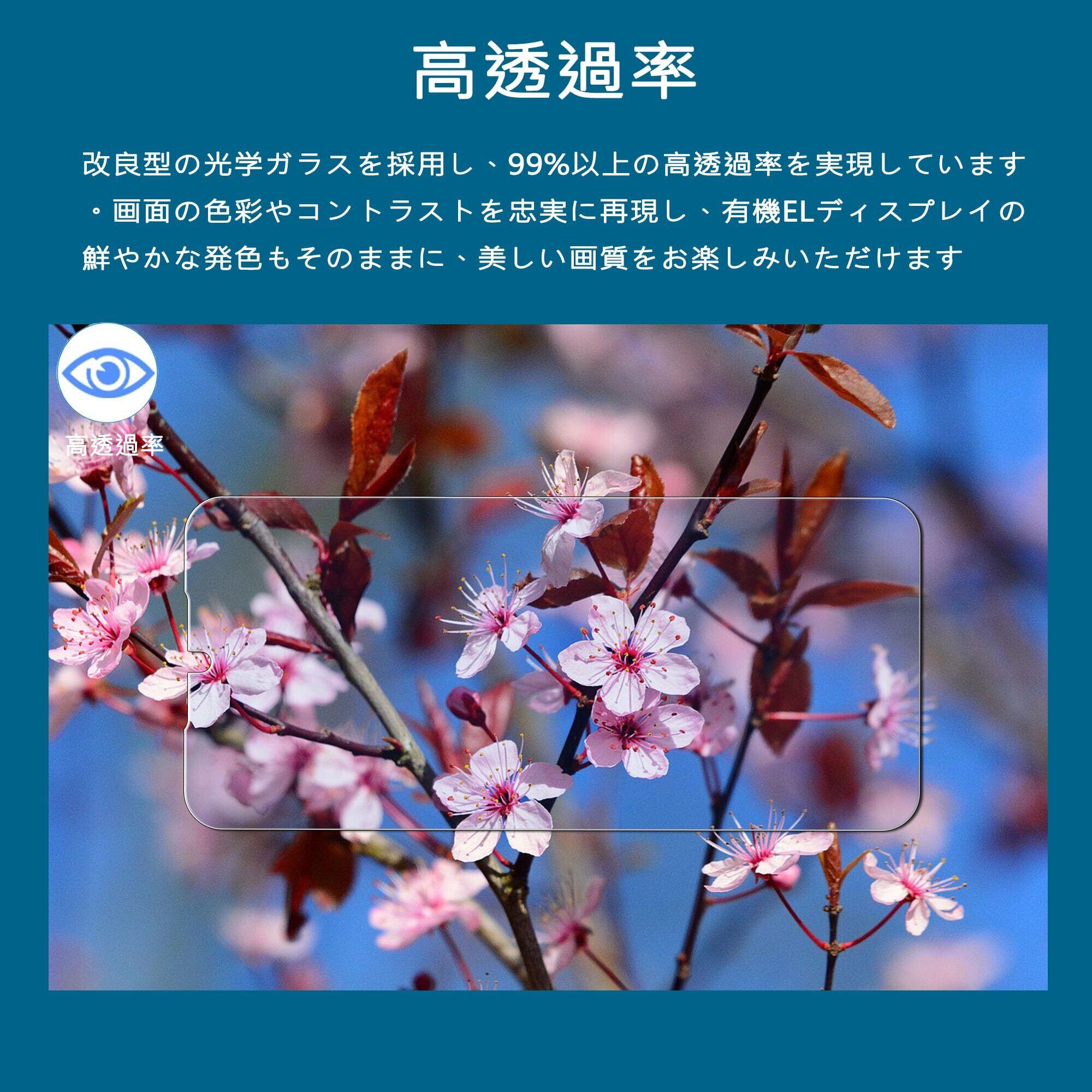【9H硬度 飛散防止】:表面硬度9Hの強化ガラスを採用しており、外部からの衝撃をしっかり吸収し、画面へのダメージを最小限に抑えます。万が一割れてしまった場合でも、飛散防止加工により破片がフィルム内にとどまり、飛び散らず安全です