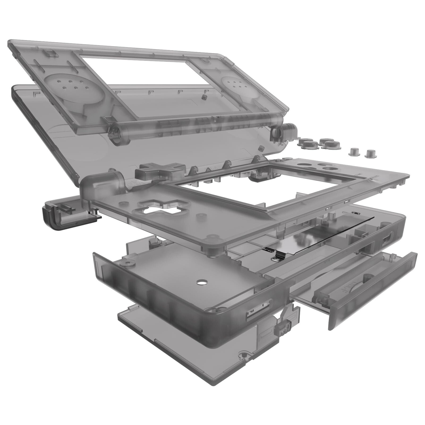 eXtremeRate ds liteに対応用組み立て式カスタム交換シェルクリア素材、交換ボタンも付き、ニンテンドーdsライトに対応用スクリーンレンズ【クリアブラック】