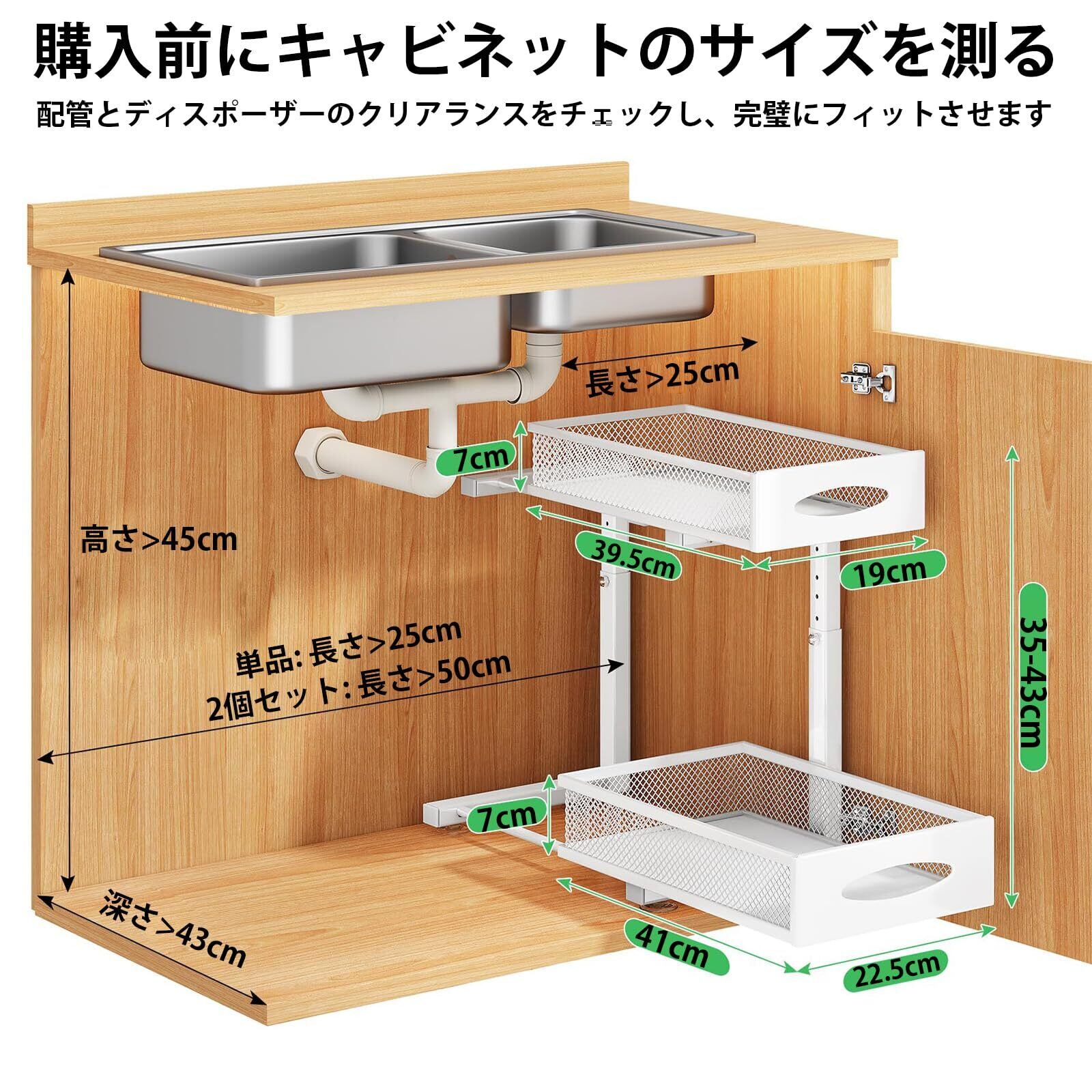 シンク下 収納 スライド 洗面所 収納 2段引き出し式 シンク下収納ラック 2個セット キッチン収納 幅20cm 洗面台下 調味料 収納 小物整理 金属製 高さ調節可能 大容量 組立簡単 キッチン/トイレ/ベッドルーム ホワイト