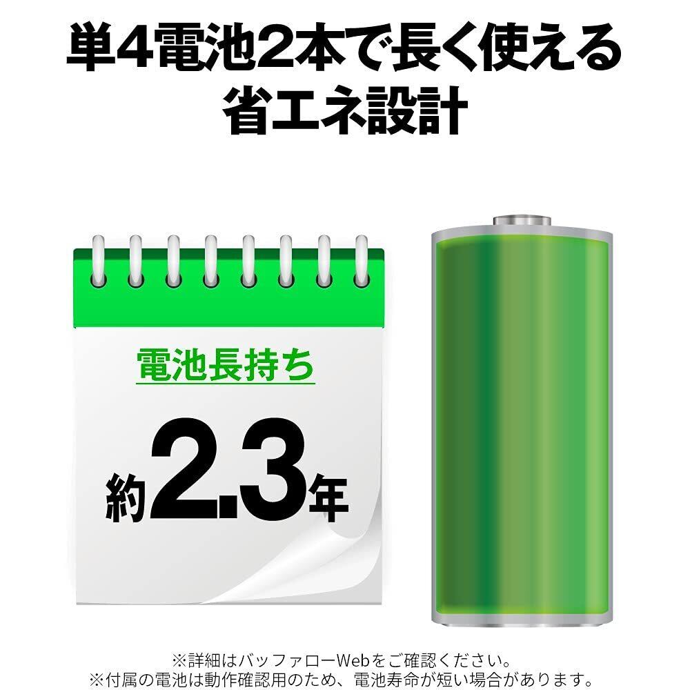 ■動作時間(アルカリ乾電池使用時) 想定使用可能時間/864日 ※当社計測値につき値ではありません。使用環境・状況によって異なります。 ※自然放電を考慮せず。アルカリ乾電池を使用。1日8時間のパソコン操作のうち5%をキーボードに割り当てた場合。