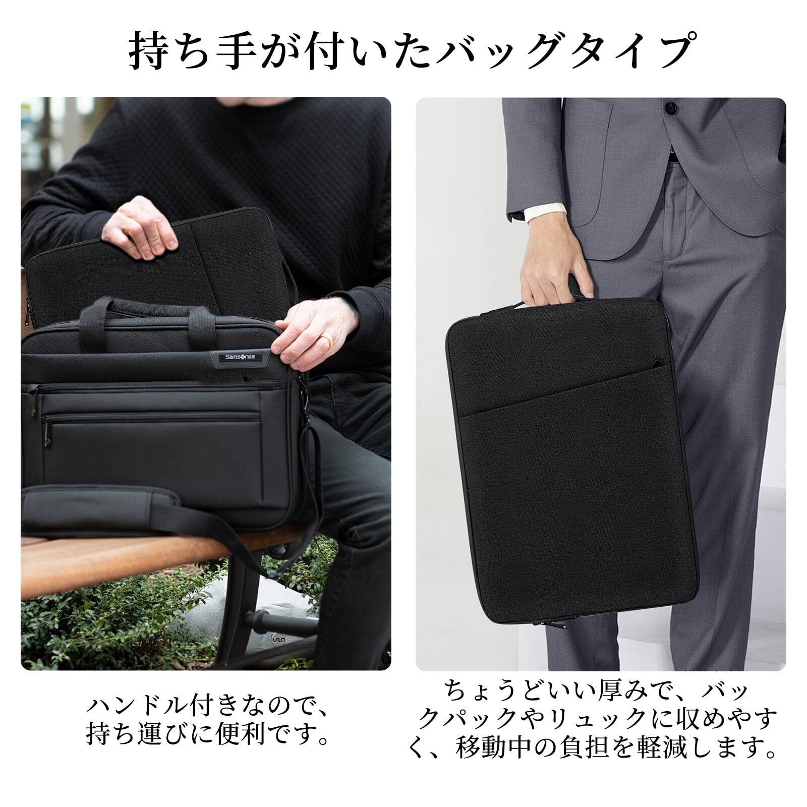 【薄さ&軽さ】重量わずか200gの超薄型設計で、かさばらないのが特徴。バッグやリュックの中にパソコンケースを入れて持ち歩くのに便利です。家、オフィス、通勤、出張、通学などのノートパソコンを頻繁に持ち運ぶ場合は活用できます。