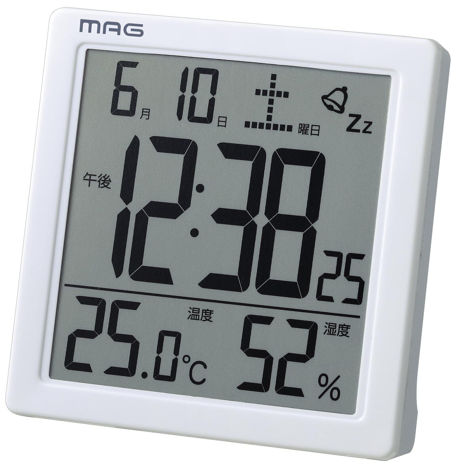 【2022最新】MAG(マグ) 目覚まし時計 置き時計 デジタル 温度計 湿度計 温湿度計 カレンダー 電子音 アラーム スヌーズ ライト ホワイト カッシーニ T-726 WH-Z ノア精密