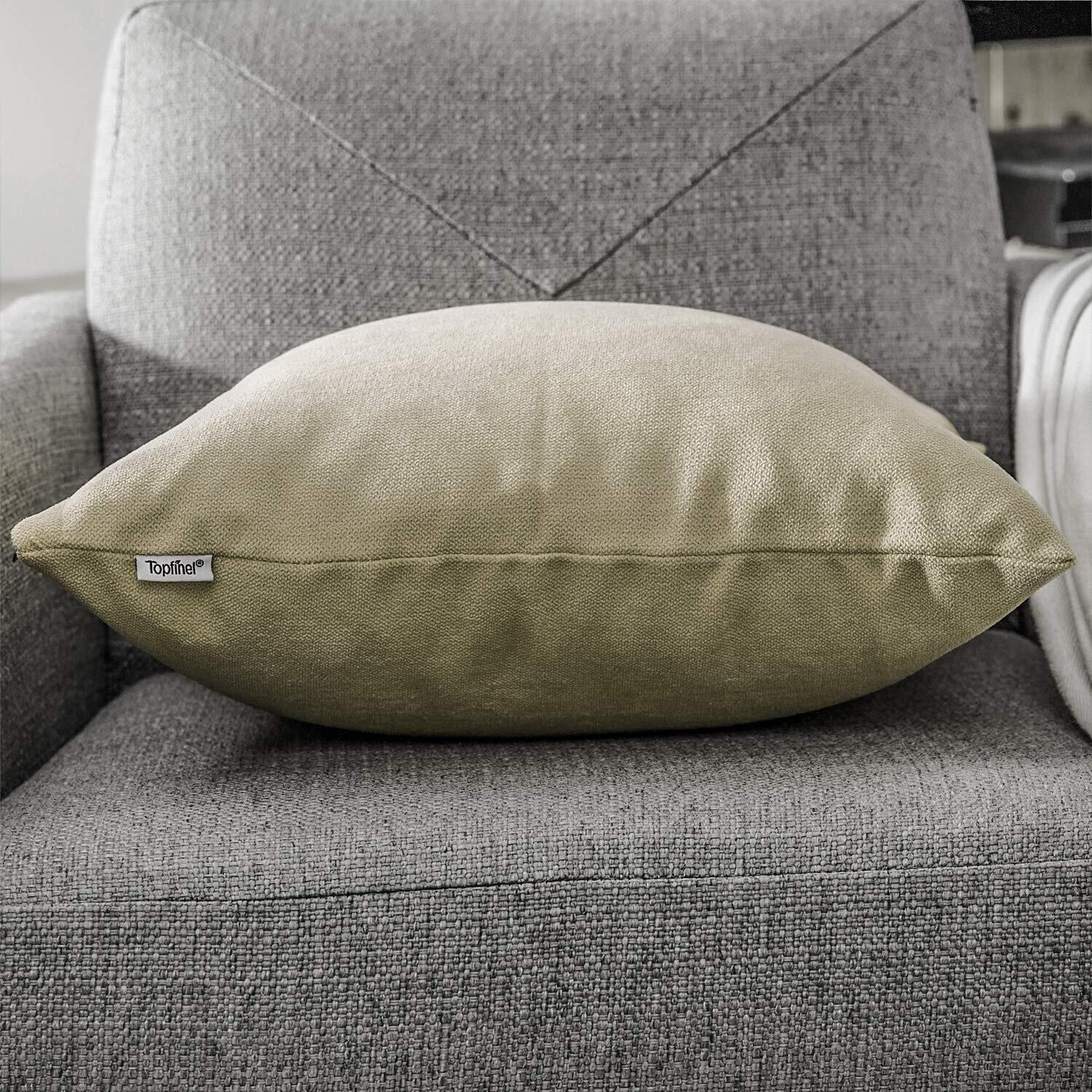 Topfinel クッションカバー リネンっぽい 45×45cm 北欧 おしゃれ 綿麻 無地 ソファ背当て 装飾枕カバー 座布団カバー カーキ 2枚セット(全18色)
