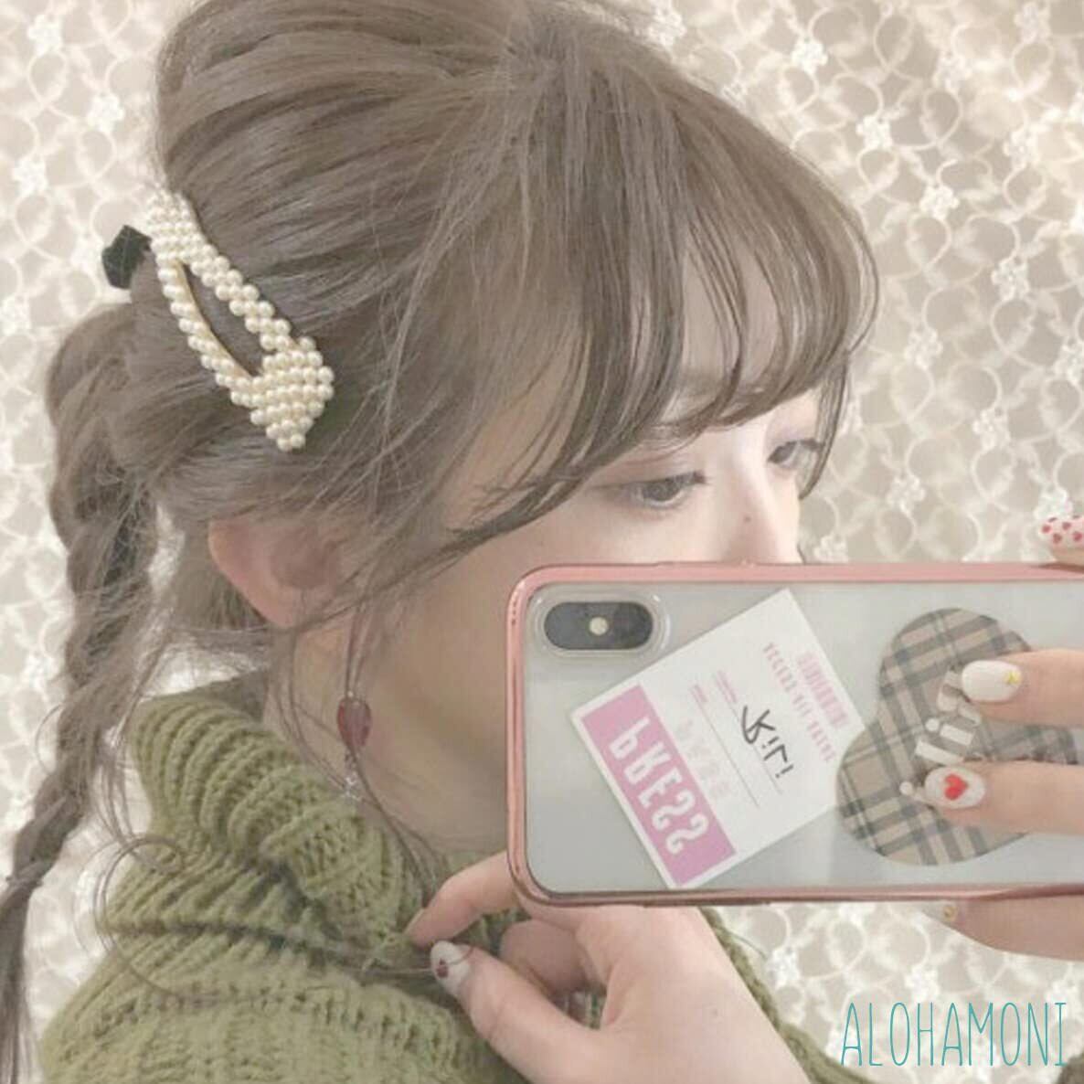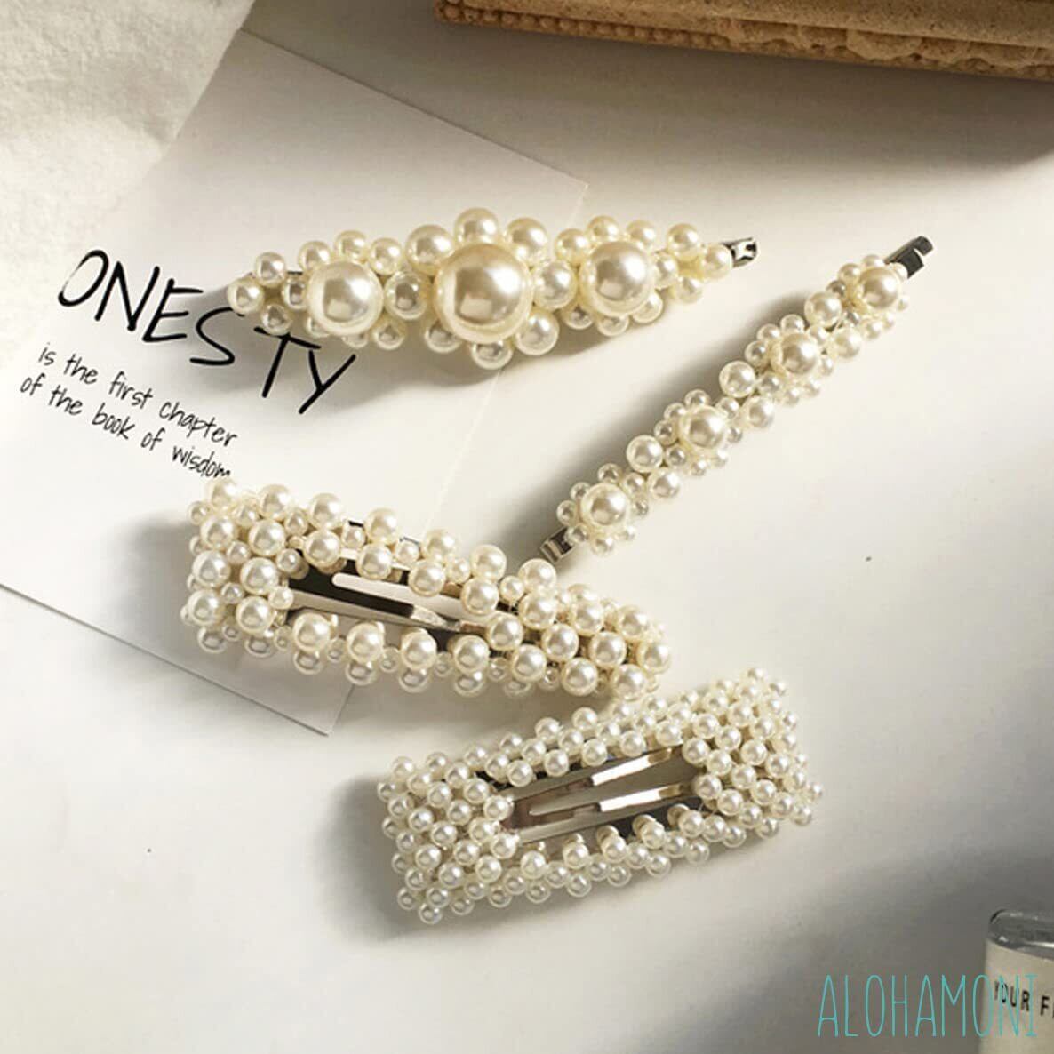 [ALOHAMONI] パール ヘアクリップ リッチパール ヘアピン バレッタ バナナクリップ ビッグ 大ぶり スリーピン パッチン留め 前髪 ヘアアクセサリー 髪留め 髪飾り 韓国 オルチャン (小粒)