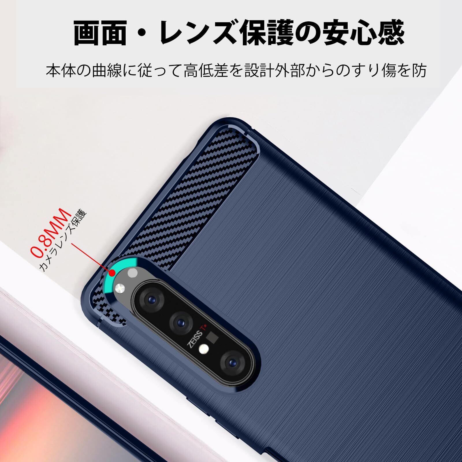 ケース 対応 Xperia ACE III 用の ケース 耐衝撃 TPU 薄型 軽量 対応 ソフト エクスペリアACE III SO-53C SOG08 用のカバー カーボン風 デザイン ワイヤレス充電 角保護強化 柔らかい 耐久 指紋防止 黄変防止 滑り止め 人気 保護カバー ダークブルー JP4-20