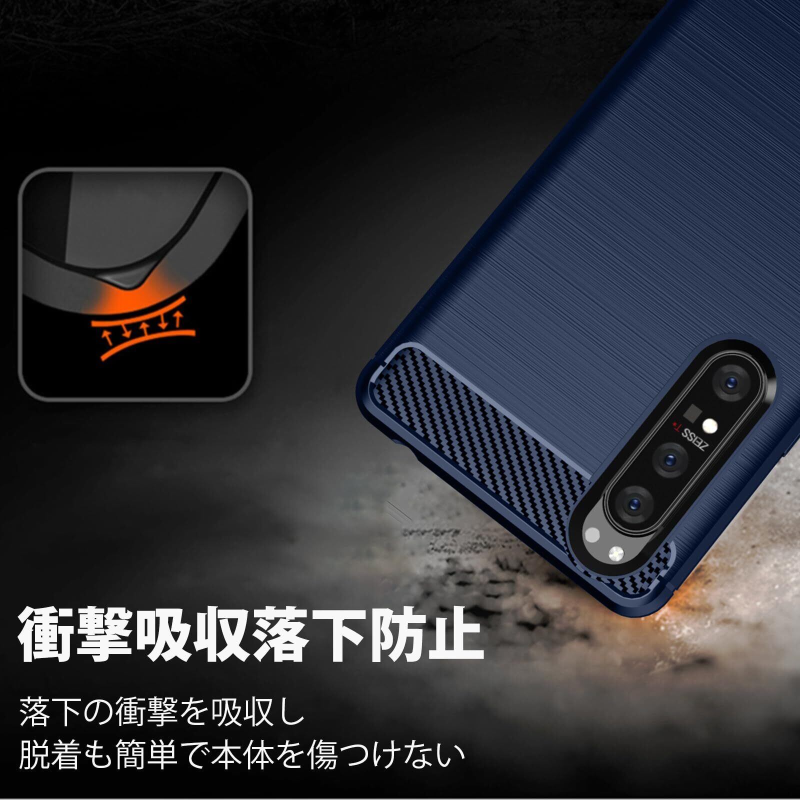 【新春セール】ケース 対応 Xperia ACE III 用の ケース 耐衝撃 TPU 薄型 軽量 対応 ソフト エクスペリアACE III SO-53C SOG08 用のカバー カーボン風 デザイン ワイヤレス充電 角保護強化 柔らかい 耐久 指紋防止 黄変防止 滑り止め 人気 保護カバー ダークブルー JP4-20