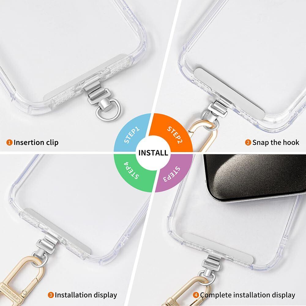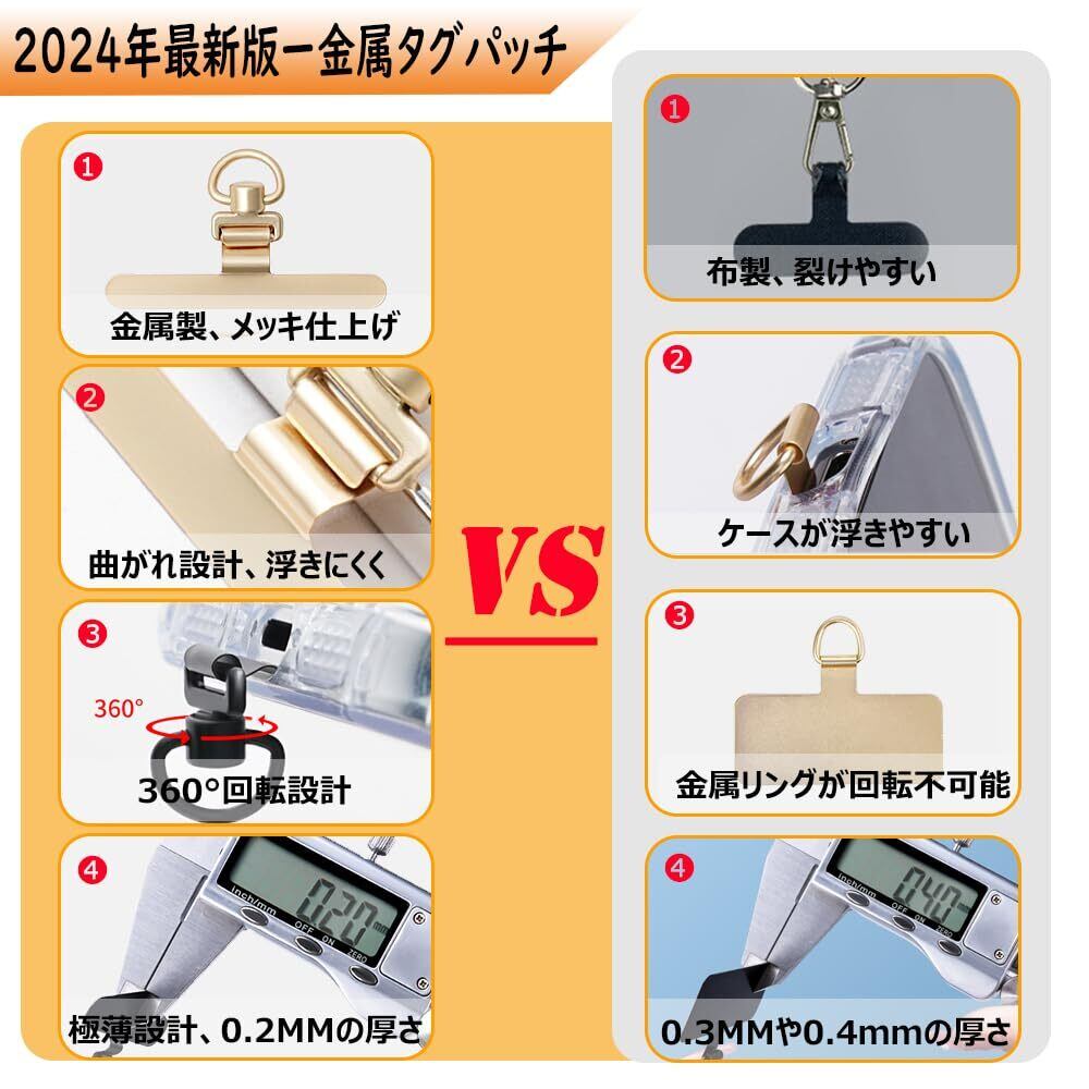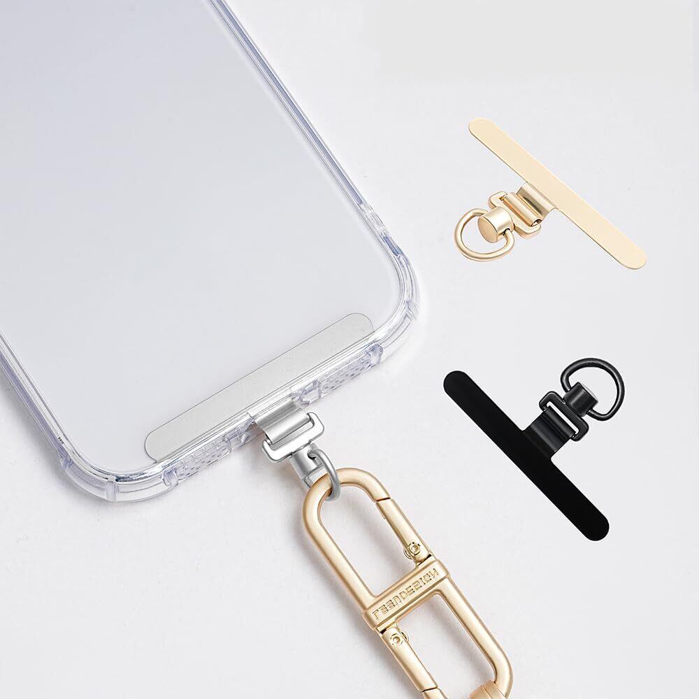 【在庫セール】スマホ ストラップホルダー 【極薄0.2mm・360°旋回式・浮きなし曲がれ設計】金属製タグパッチ ステンレス鋼 メッキ仕上げ 携帯ストラップホルダー 薄型 丈夫10kgまでの荷重量 スマホケースに挟む 全機種対応 充電影響なし 落下紛失防止 (F)