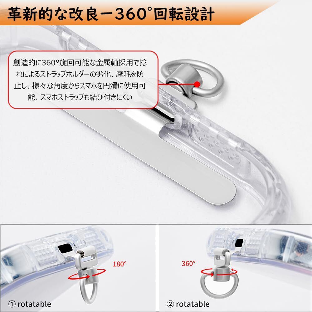 【革新版-360°回転仕様】:この新発売ストラップホルダーは創造的に360°旋回可能な金属軸採用で捻れによるストラップホルダーの劣化、摩耗を防止します。さらに、360°回転設計により、様々な角度からスマホを円滑に使用可能、スマホストラップも結び付きにくい、使用便利さを非常ににアップさせます。