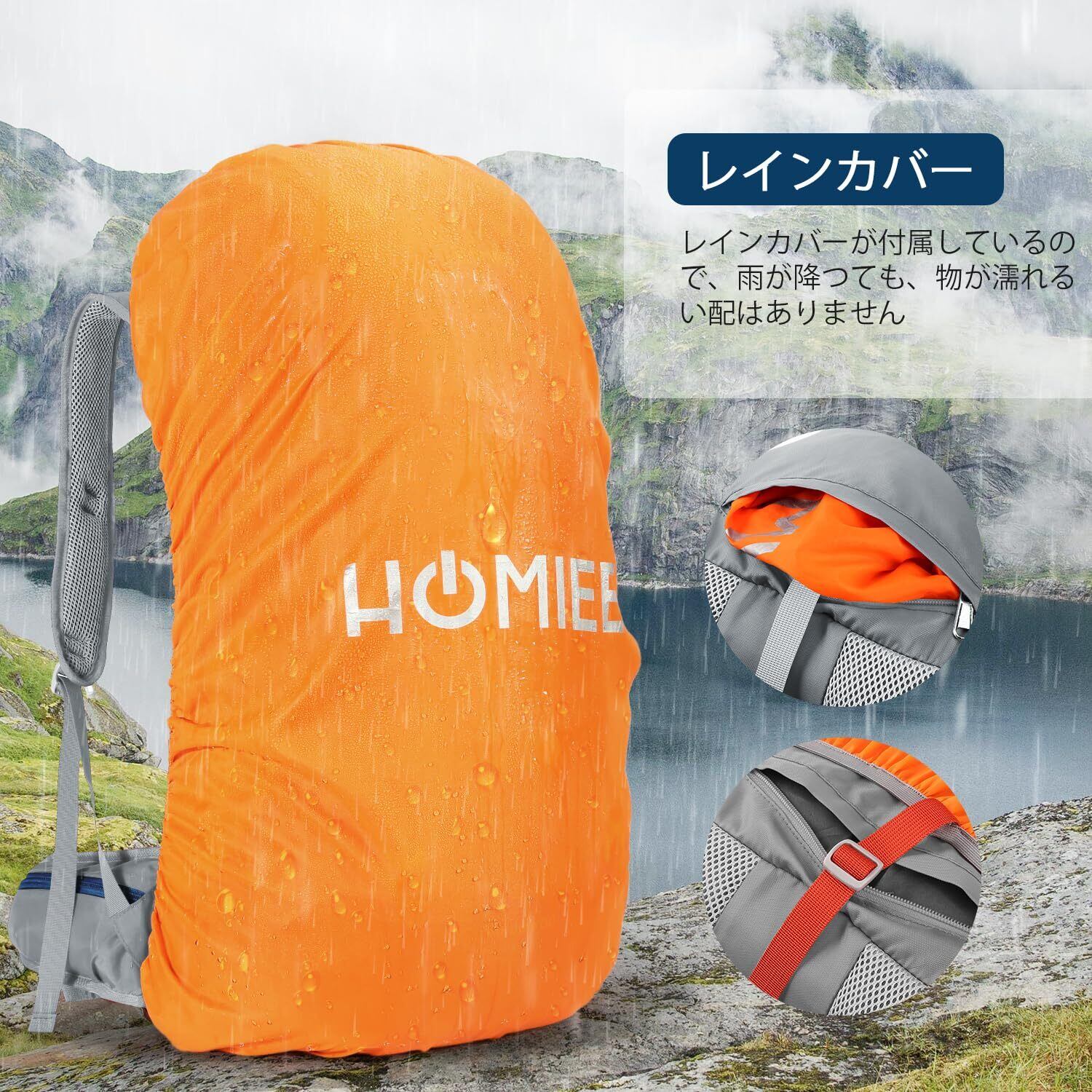 [HOMIEE] リュック 登山 50L アウトドア バッグ バックパック ザック 大容量 防水 ハイドレーション レインカバー付き 多機能 超軽量 収納性 登山用リュックサック ハイキング アウトドア 防災 キャンプ 旅行 花見 遠足 父の日 (ブルーグレー)