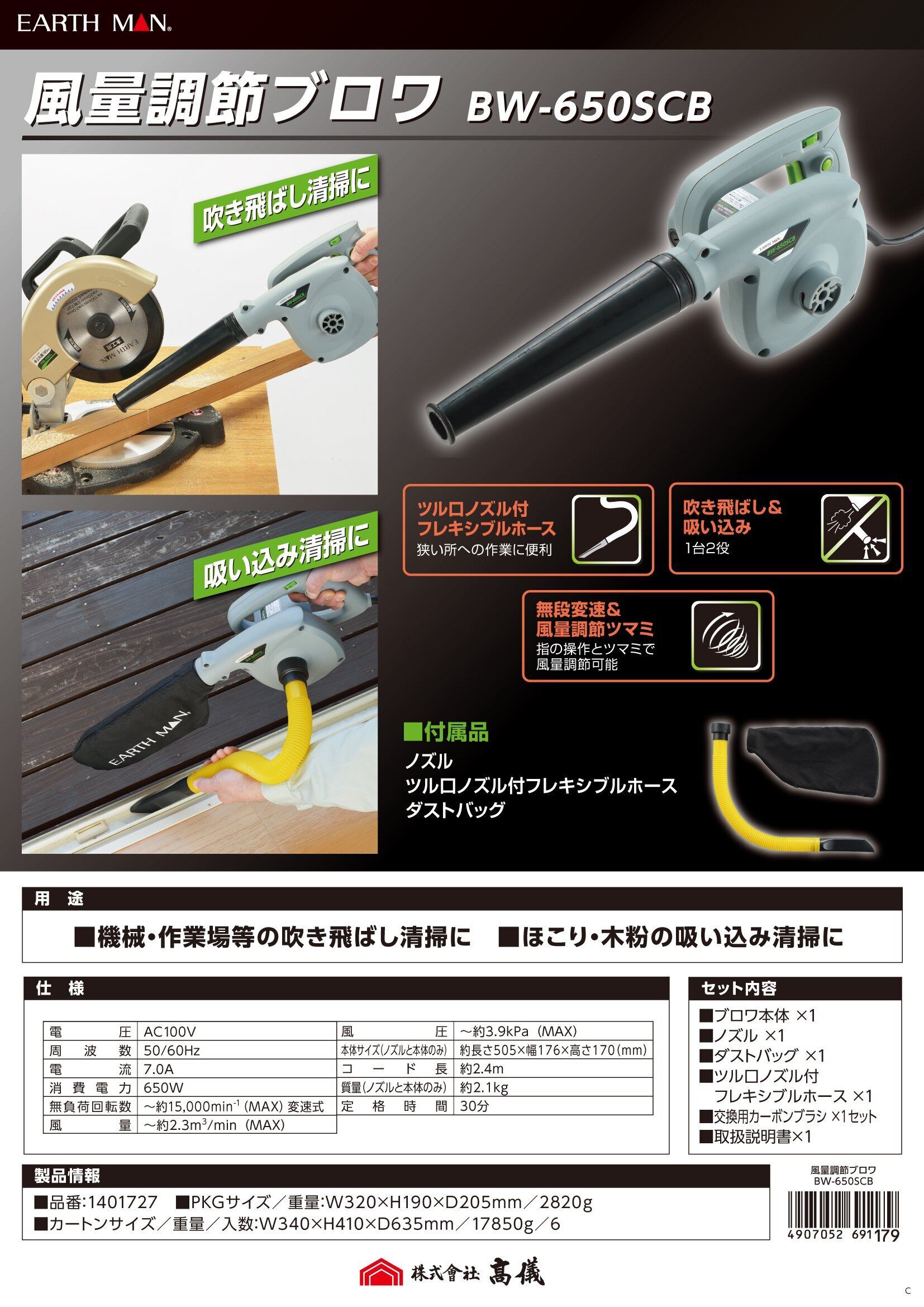高儀(Takagi) EARTH MAN 風量調節ブロワ 吹き飛ばし清掃に 吸い込み清掃に 1台2役 風量調節可能 BW-650SCB
