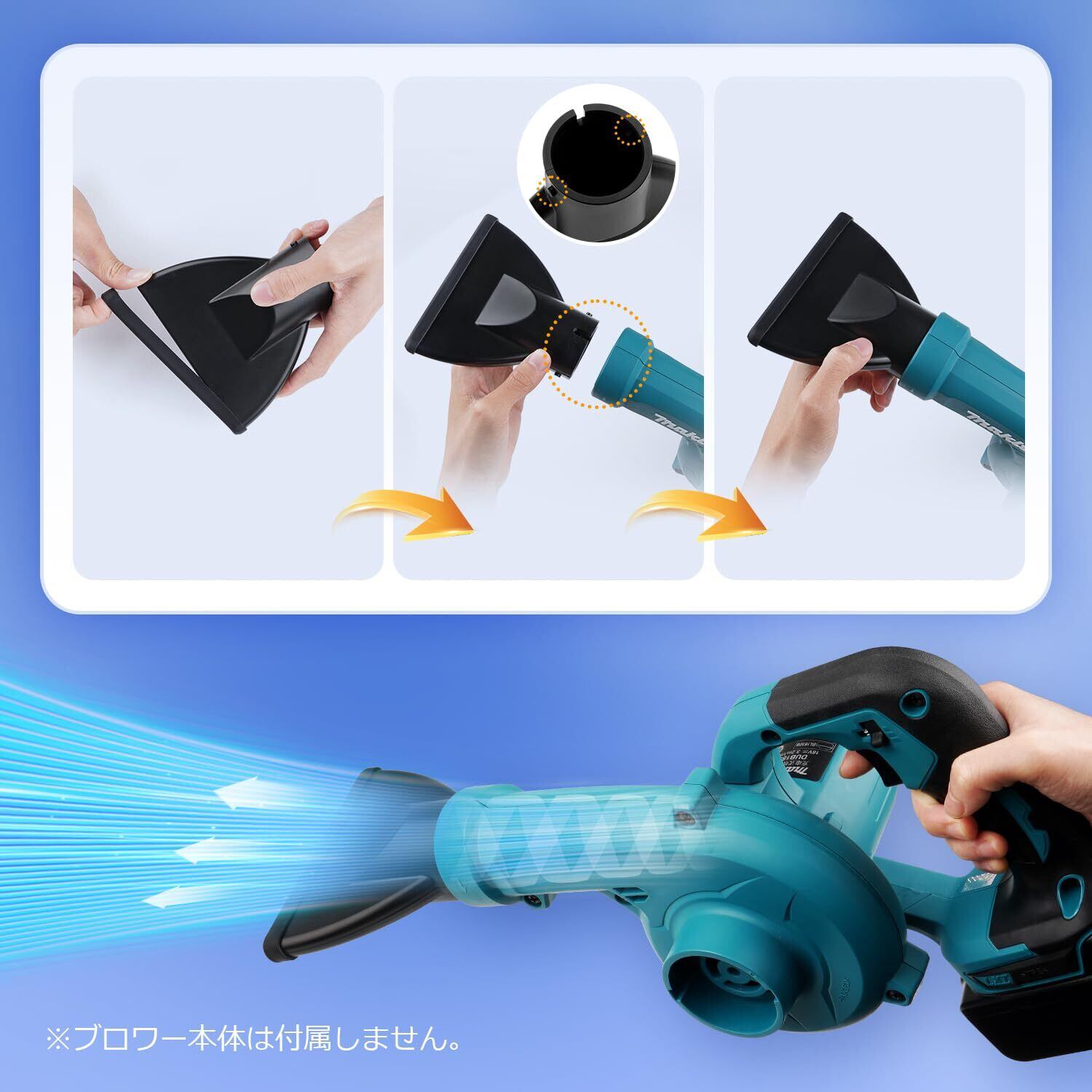 【互換性で安心使用】対応機種:マキタブロワー対応・KIMOブロワー対応用①マキタ(Makita)ブロワ用:UB002G・UB185DRF・UB185DZ・UB186DRF・UB186DZ・UB144DRF・UB144DZ・UB100DSH・UB100DZ・UB1103・MUB402; ②KIMOブロワー用:QM-6001・QM-6303・QM-4A6001;互換性が高く、安心してお使いいただける洗車後の水切り最高ワイドノズルです。※ご注意:本製品はノズルのみで、ブロワ本体は含まれておりません。