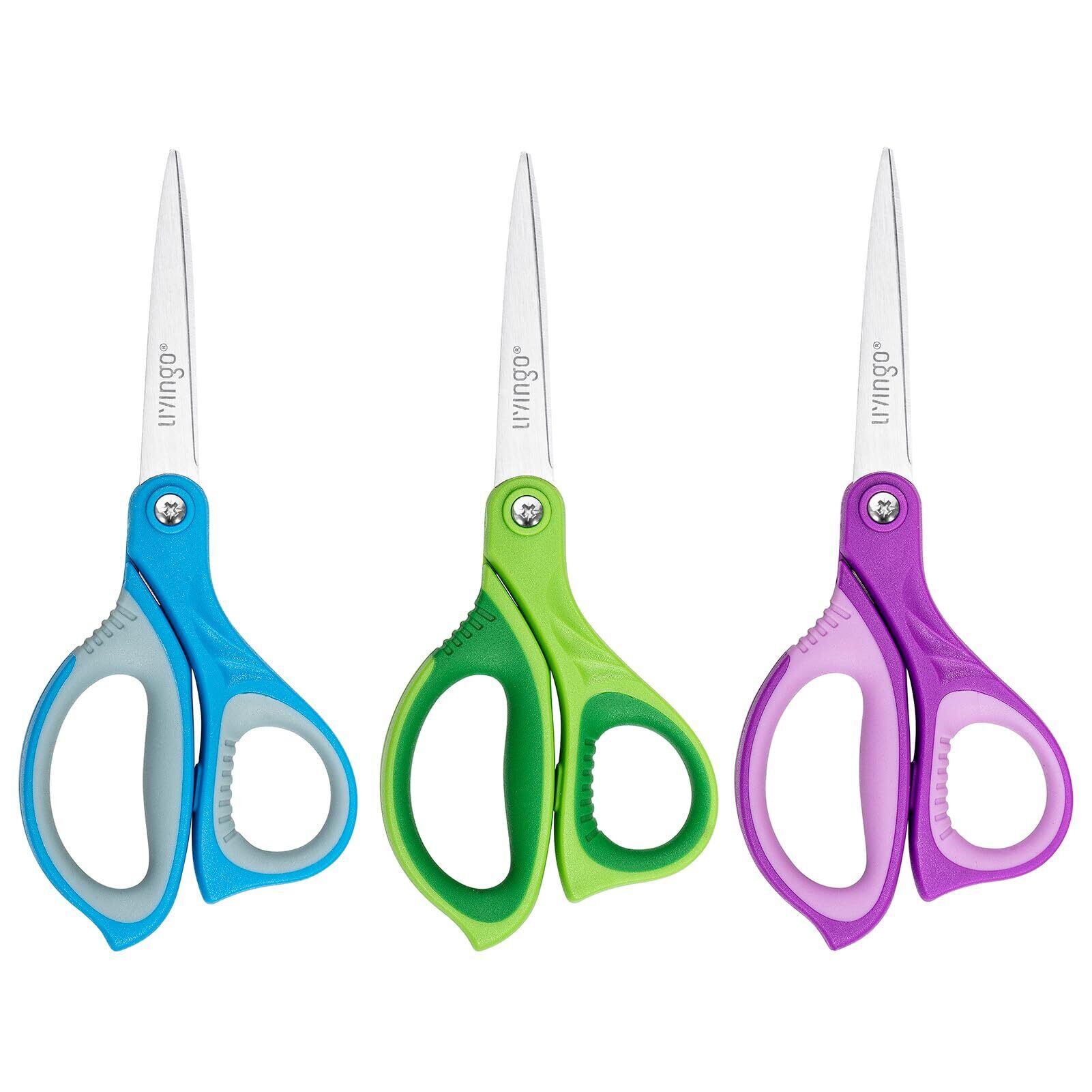 LIVINGO 先端の尖った学校用はさみ 生徒向け" 先端が尖った学校用ハサミ 178mm 12歳以上のお子様に最適。中学生・高校生・10代の女子・男子向けの一般用途・プロ仕様の生徒用はさみ。紫、青、緑のはさみ3点入り。