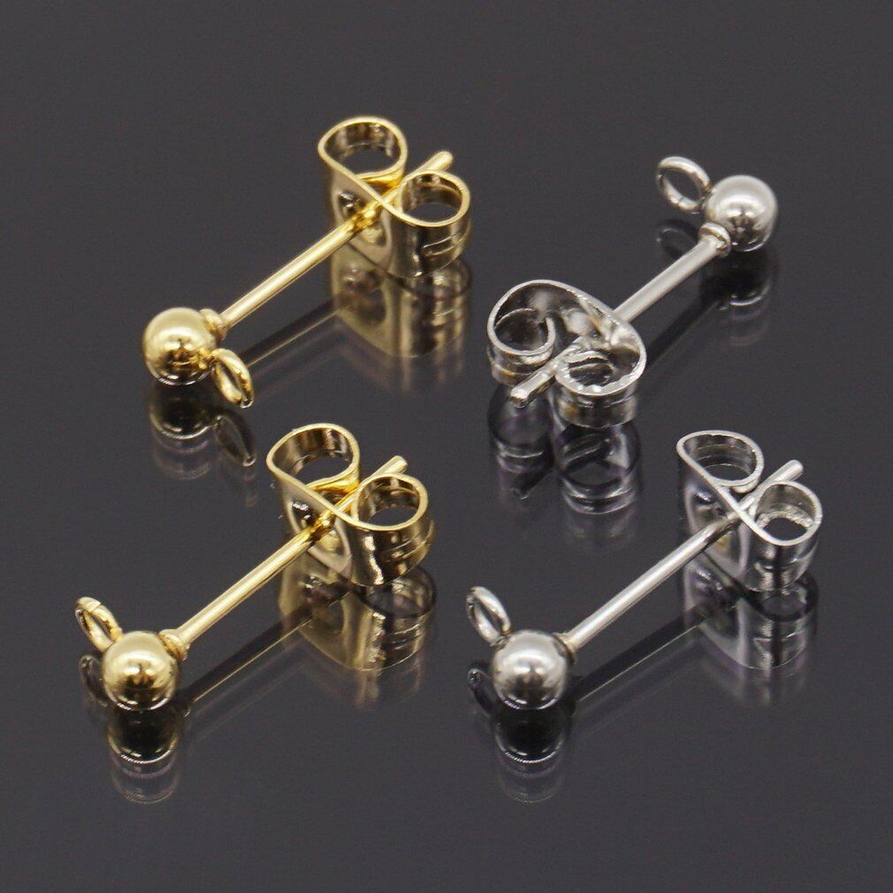 サージカルステンレス カン付き ピアス パーツ 3mm 丸玉 キャッチ付き ゴールド シルバー 2色20ペア40個 セット
