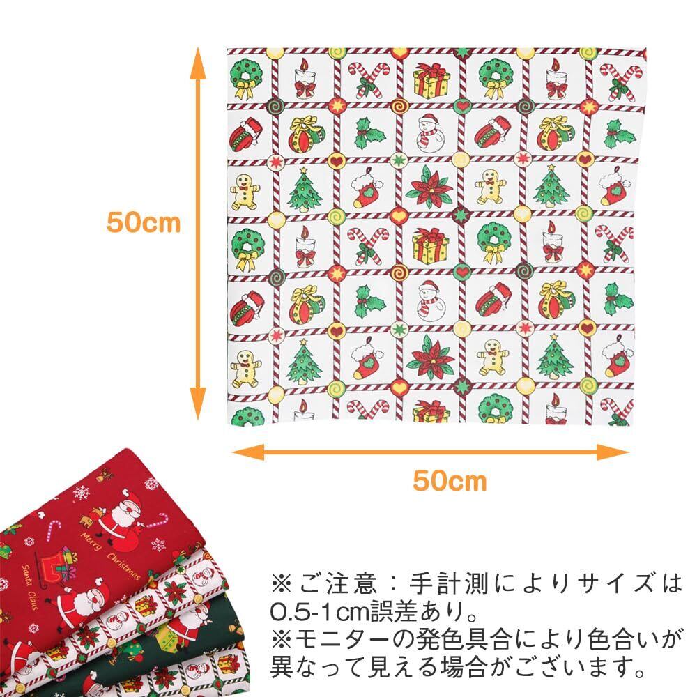 【数量限定】サムコス パッチワーク布 クリスマス 布 10枚図案セット 50*50cm 綿 DIY手芸用 ハンドメイド 小花 パッチワー (レッド, A-50cm)