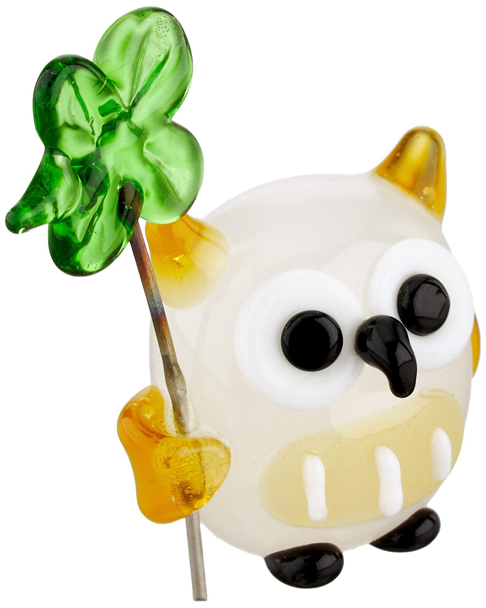 【数量限定】かわいい ふくろう 手作り ガラス細工 クローバー持ち フクロウ