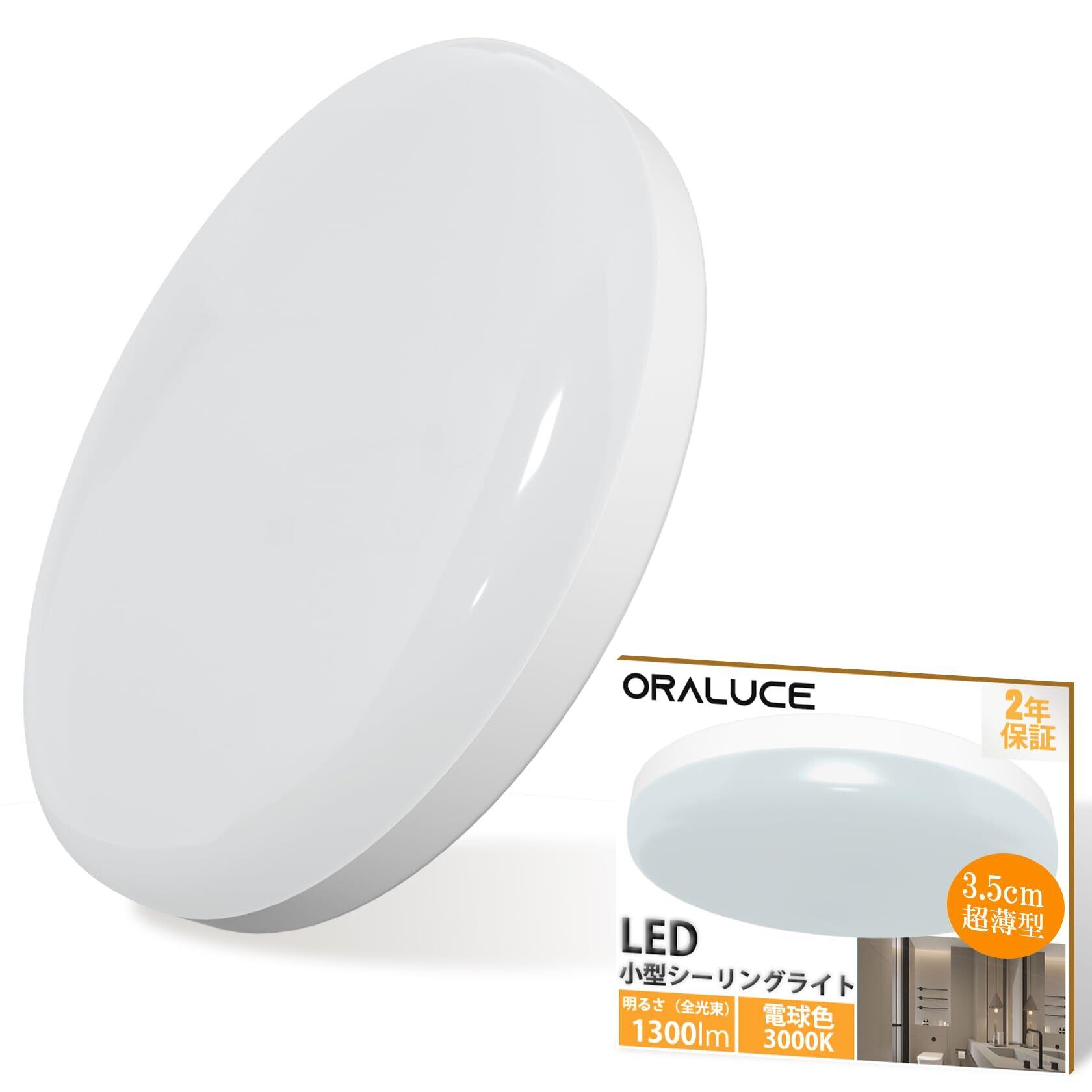 ORALUCE シーリングライト 小型 電球色 12W 1300lm 照明器具 天井 LED ワンタッチ取付 コンパクト 天井照明 廊下、玄関、トイレ、階段、台所 高演色 長寿命 節電対策 SCL12L-02