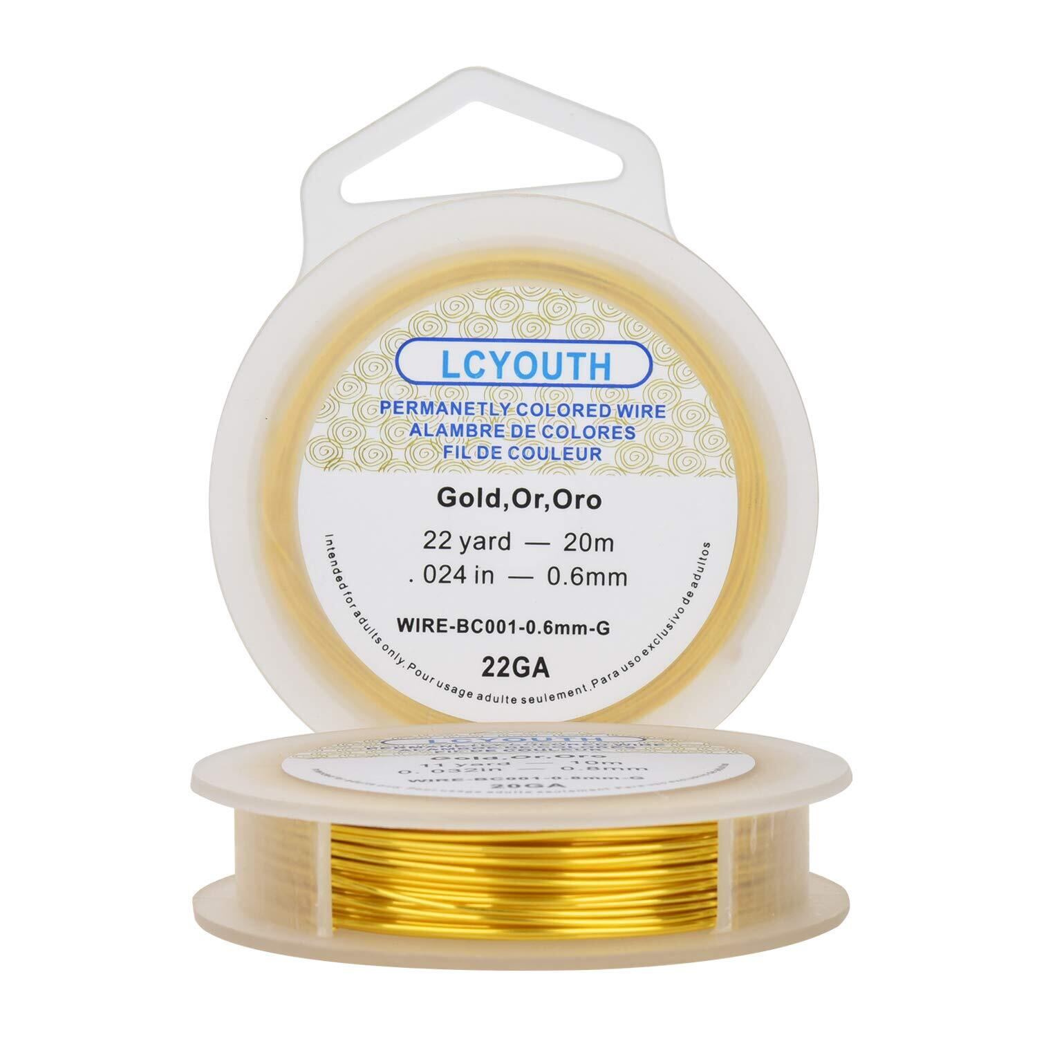【LCYOUTH Artistic Wire】アクセサリーワイヤー アートワイヤー ジュエリー作り DIY手芸素材 手作り (ゴールド, 0.6mm)
