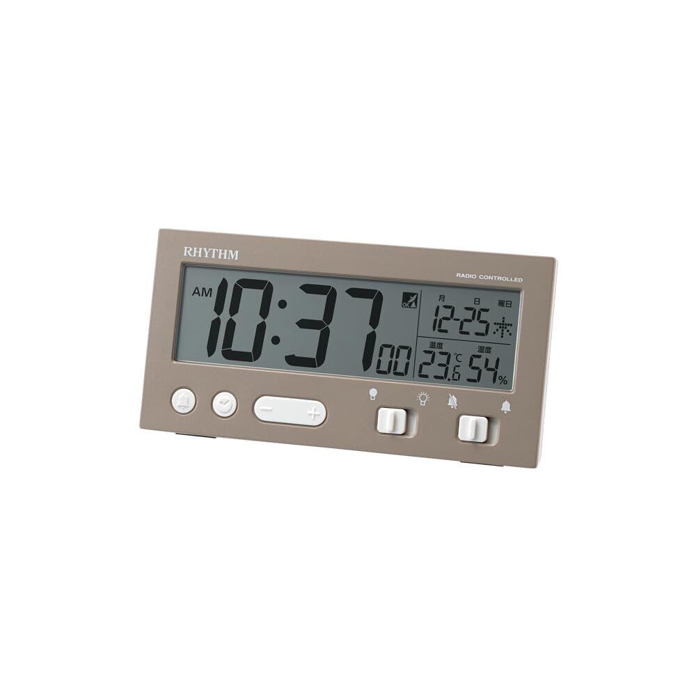 【特価セール】リズム(RHYTHM) 目覚まし時計 電波時計 電子音 アラーム (スヌーズ 付) 自動点灯 ライト 温度計 湿度計 カレンダー 茶色 6.6×13.1×3.5cm フィットウェーブ D237 8RZ237SR06