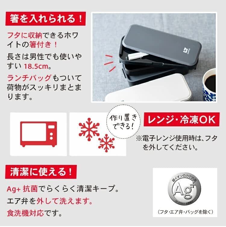 アスベル 弁当箱 ランタス WS-T800C 幅21.3cm×奥行8.6cm×高さ9.4cm バッグ付 ブラック