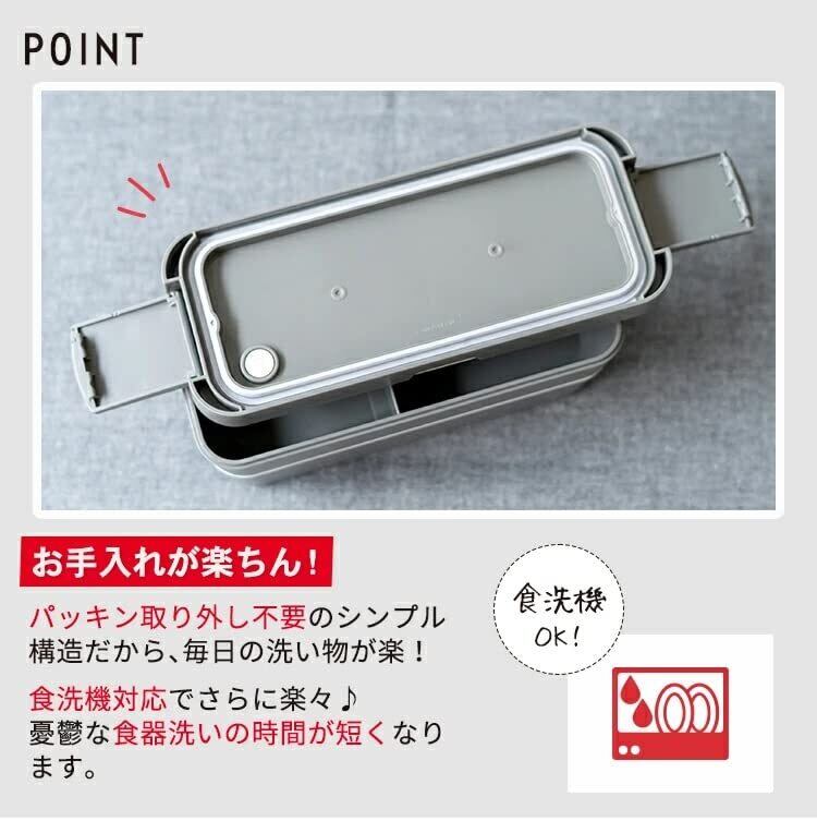材質:箸フタ=ABS樹脂、箸=AS樹脂、上容器フタ=AS樹脂/熱可塑性エラストマー、上容器・下容器・下容器フタ・仕切り・止め具・弁本体=PP、弁=シリコーンゴム、ランチバッグ=ナイロン、ベルト(バッグ用)=ポリエステル/ゴム/ナイロン