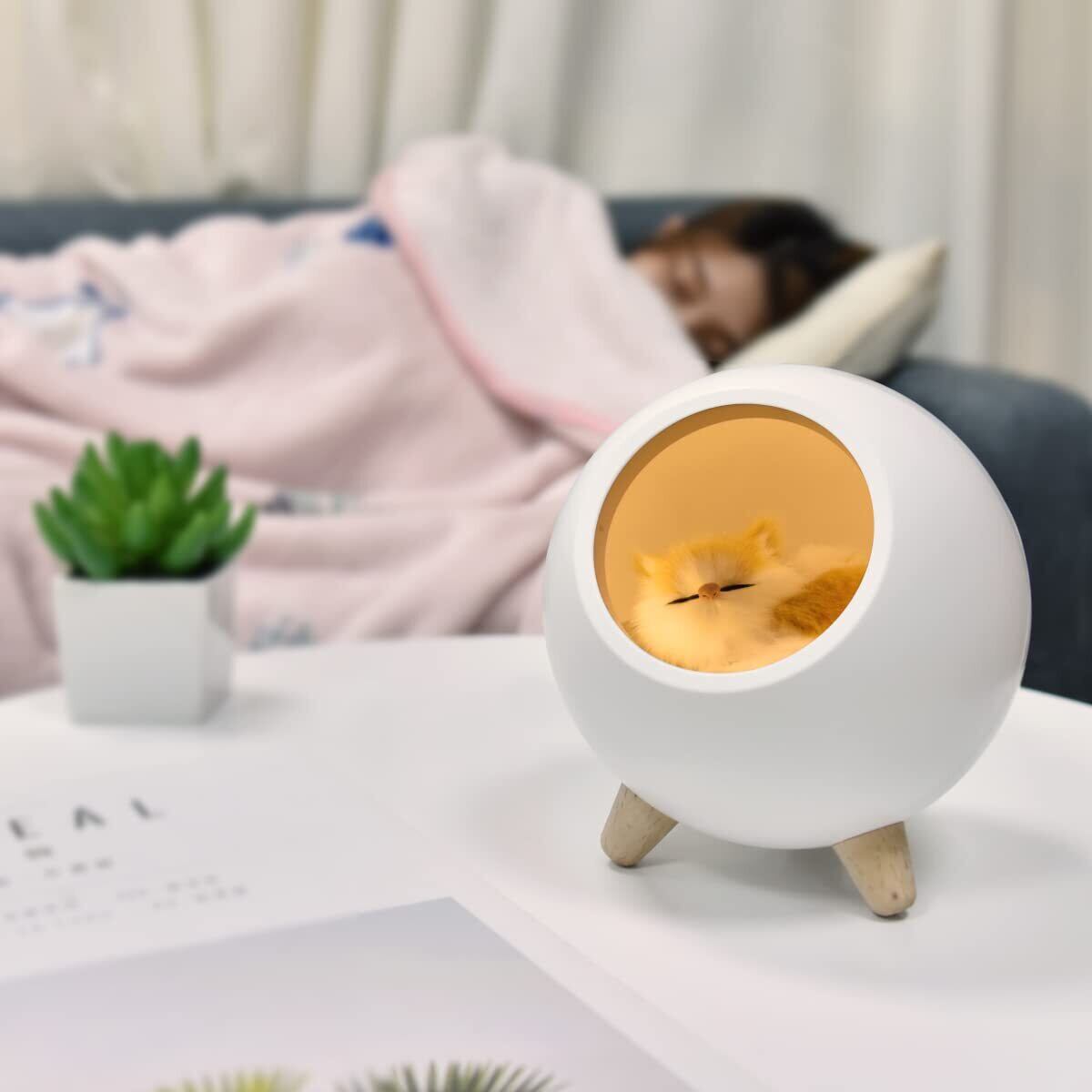 猫 インテリアライト ベッドサイド デスク 韓国風 充電式 取り外し可 フィギュア ディスプレイ (ホワイト)