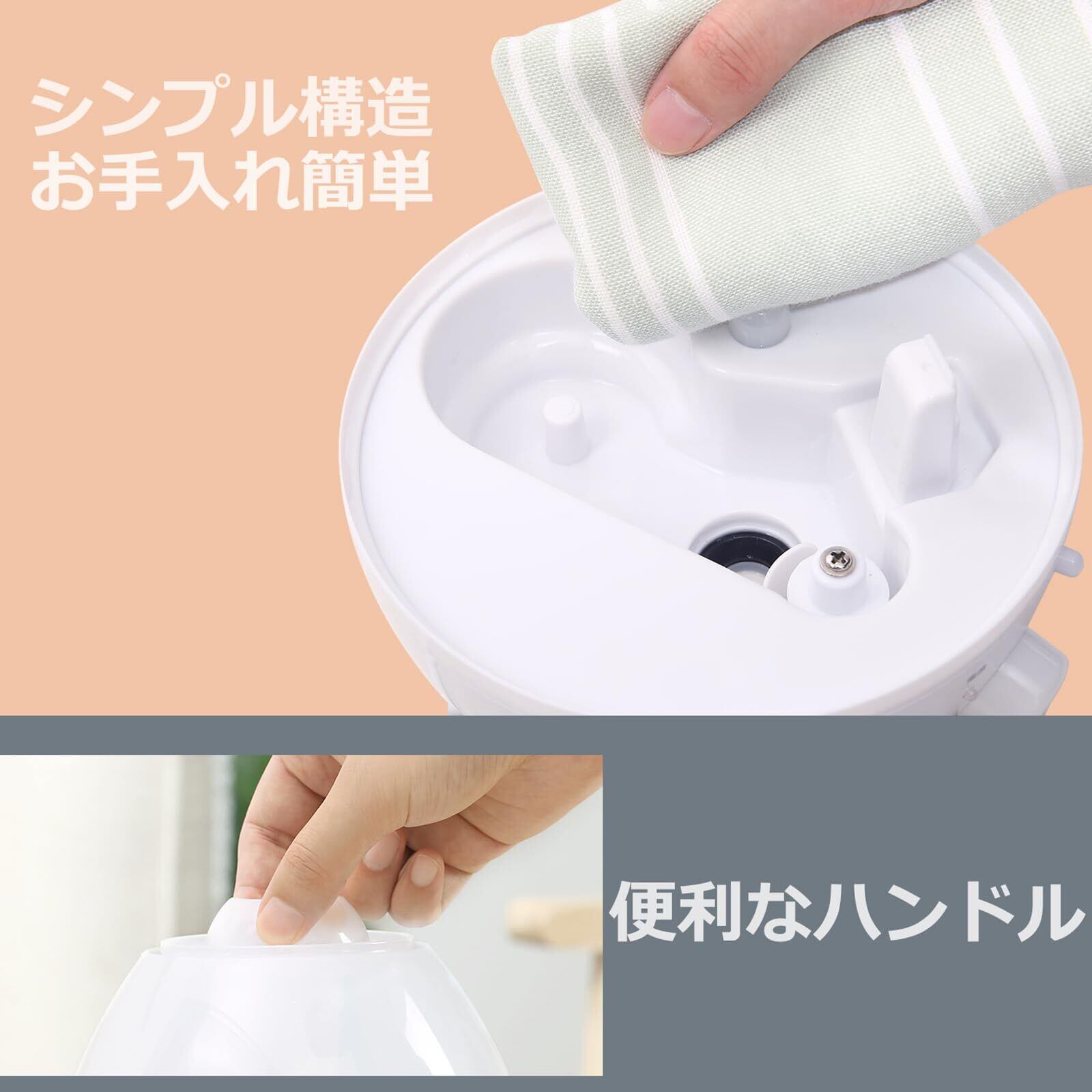 【無段階ミスト調節】ダイヤル操作で無段階に加湿量を調節可能。部屋の乾燥具合やお好きの湿度に合わせて簡单に微調節できます。自然蒸発しやすい5~10μm超微細ミストで、床や加湿器の周囲が濡れにくく、快適にお使い頂けます。操作がシンプルでわかりやすく、初心者やお年寄りにもオススメです。