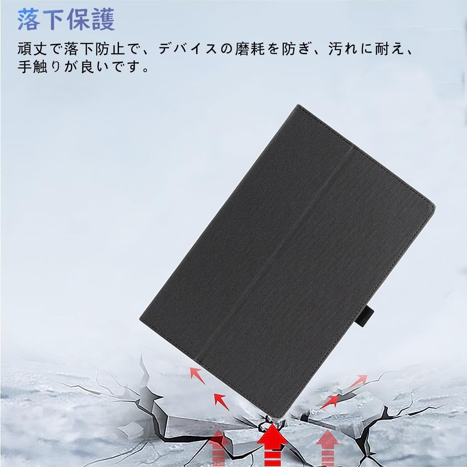 【商品材質】表面は綺麗で高級感のあるPUレザー仕様、内側は手触りの良い材質を使い、大切なタブレットの取り出し時や収納時の摩擦によって発生するキズを防止します。ケースの本命である大切な本体を傷やほこりから保護してくれます