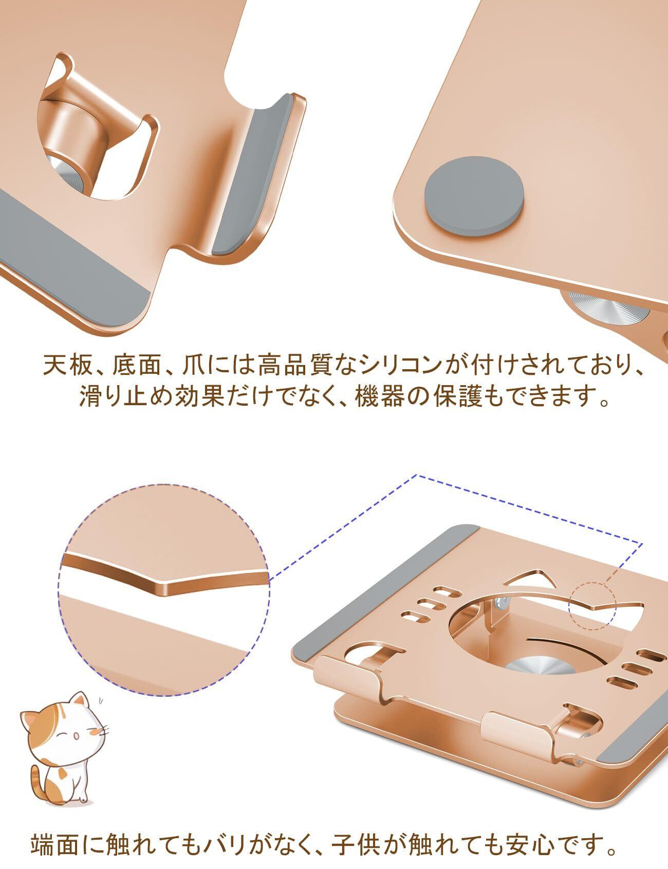 【数量限定】アオビホ(Aoviho) - ipadスタンド - タブレットスタンド - 360度回転式 - アイパッド 置き台 卓上ホルダー 折り畳み式 高さ角度調整可能 スマホ立て tablet stand 充電可能 持ち運び便利 姿勢改善 アルミ製 軽量 人間工学 iPad mini/iPad air/Pro/Switch/Kindleなど 4.7-12.9インチに対応 (ローズゴールド)