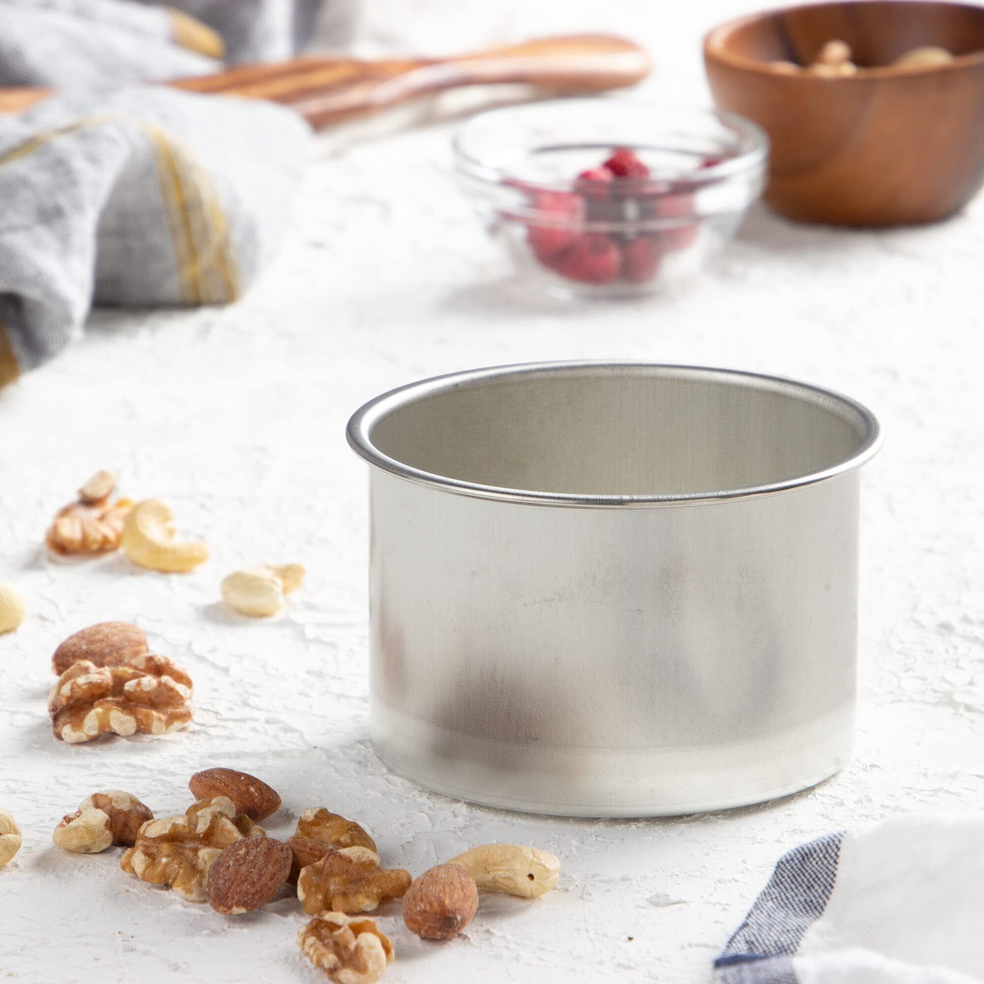 このデコ缶は、ケーキ用の業務用品として理想的です。内径18cm、深さ6cmのサイズは、さまざまなケーキの型に適しています。ブリキ板素材で、手洗いをしてください。シルバーの色は、シンプルで洗締まりのよいデザインです。