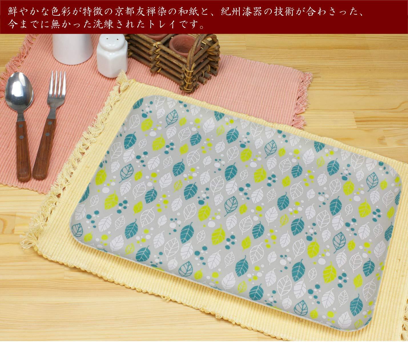 華やかな装飾が特徴の「京友禅和紙」を使った、食洗機対応のランチョンマット型のトレー。・伝統のある友禅染の和紙ならではの、温かみと上品な質感、繊細さと鮮やかさをそのままに、紀州漆器の技術で作られたトレイです。・柄は、四季をイメージした北欧テイスト溢れる4柄をチョイス。それぞれ、春(スプリング)、夏(サマー)、秋(オータム)、冬(ウインター)にちなんだ柄になっています。季節やお好みに合わせて、柄をお選び頂けます。 ・和紙ならではの温かみと上品な質感を活かしつつ、斬新な北欧テイスト溢れるデザインがアクセントのトレーです。普段使いや大事なお客様のおもてなし、日本のお土産としてもご利用頂けます。